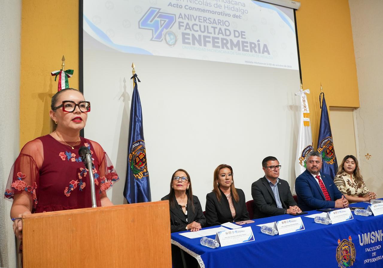 Al conmemorar el 47 Aniversario de la Facultad de Enfermería de la Universidad Michoacana de San Nicolás de Hidalgo (UMSNH), la rectora Yarabí Ávila González, destacó el trabajo de quienes integran la dependencia para lograr que la Licenciatura en Enfermería obtuviera la Opinión Técnica Académica (OTA) Favorable de la Comisión Interinstitucional para la Formación de Recursos Humanos para la Salud (CIFRHS).