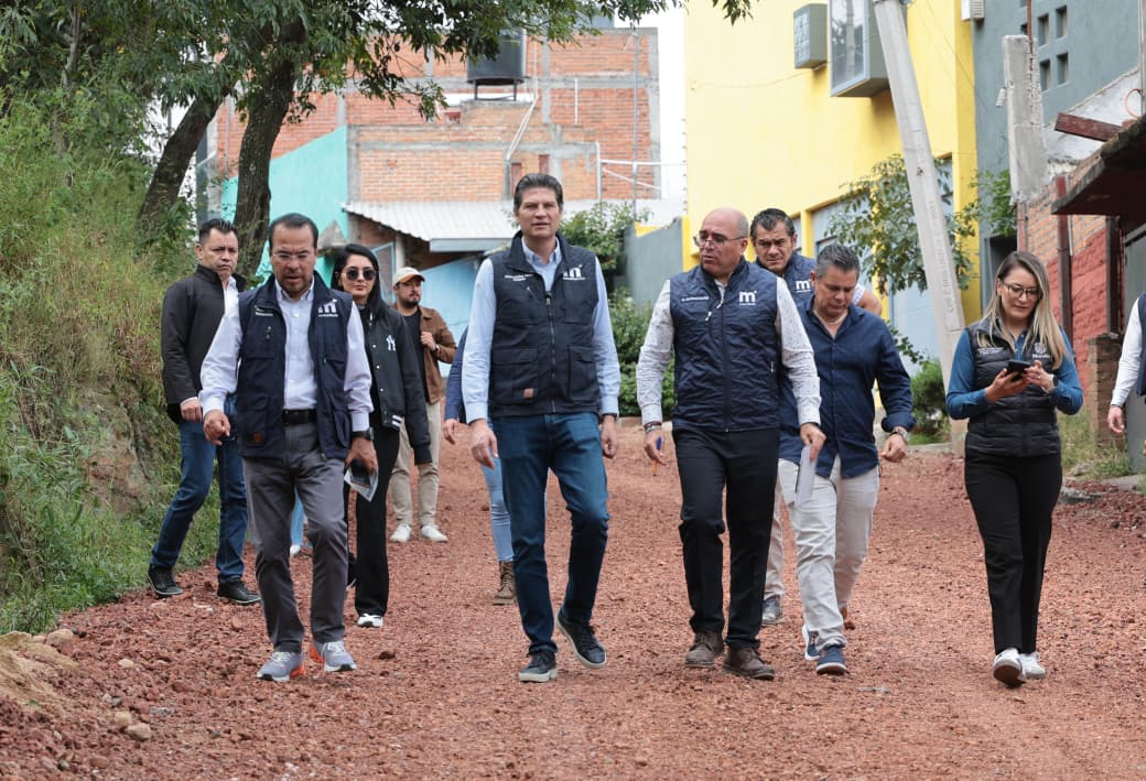 El presidente municipal, Alfonso Martínez Alcázar, supervisó la pavimentación de la calle Francisco López en la colonia San José del Cerrito, una obra de gran calado que conecta al Sur de Morelia y mejorará de manera importante la movilidad en esta zona de la capital.