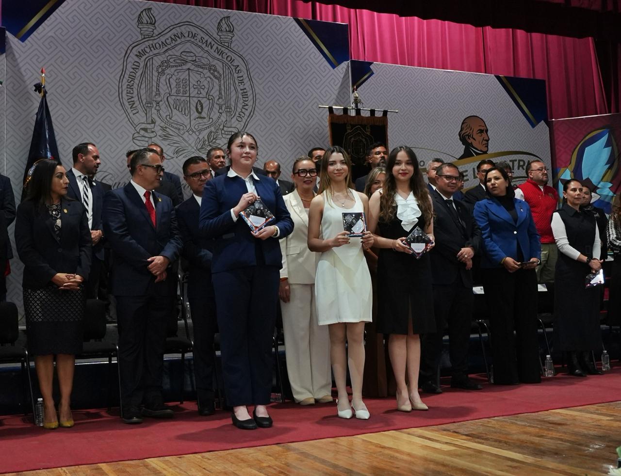 - Por primera vez desde su instauración, dicho galardón también fue entregado a alumnas y alumnos de escuelas incorporadas a la Universidad Michoacana.
