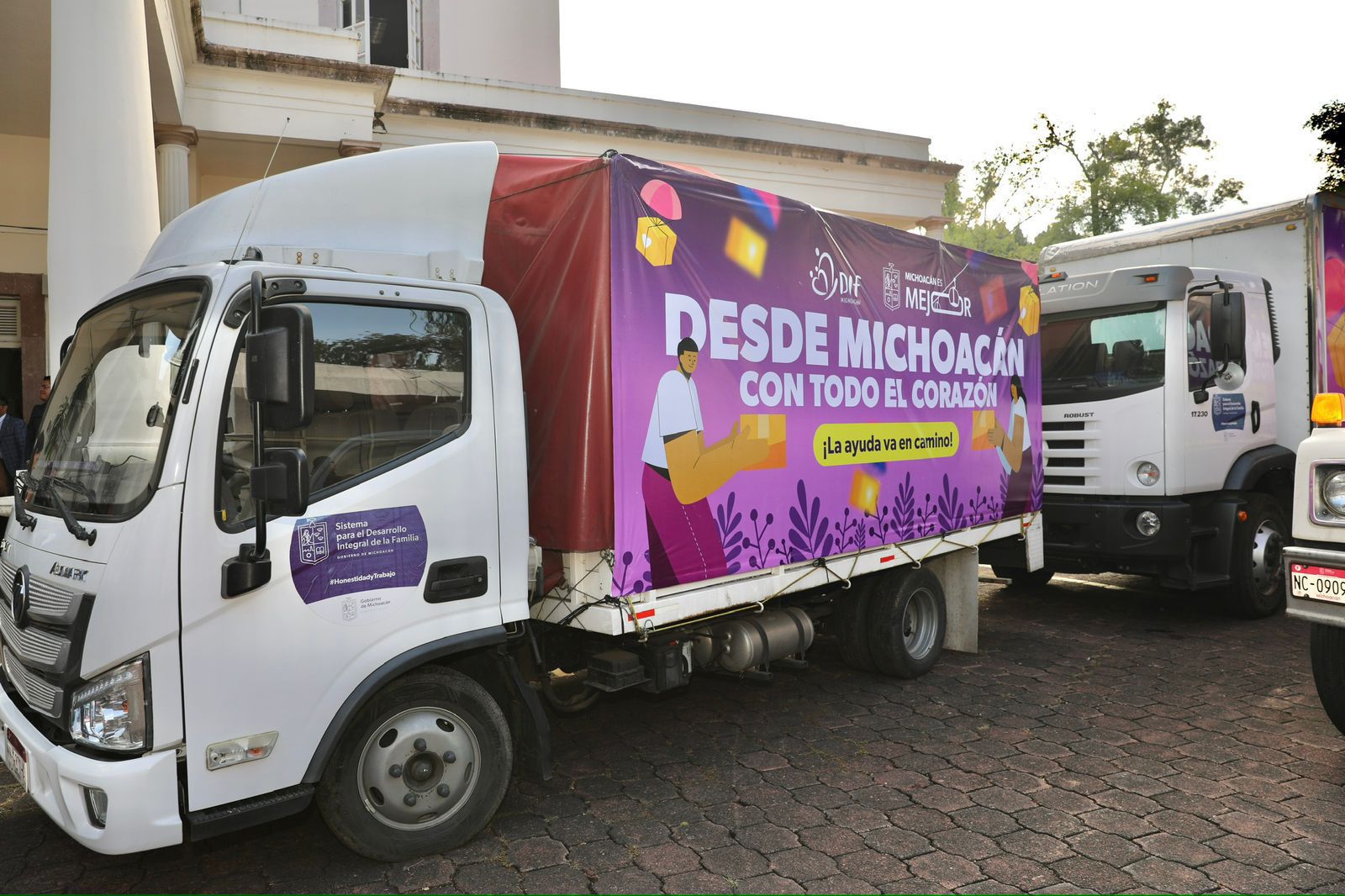 El gobernador Alfredo Ramírez Bedolla dio el banderazo de salida a tres camiones de carga y un tráiler con 55 toneladas de ayuda, para apoyar a las familias afectadas por las lluvias registradas en los estados de Veracruz, Puebla, Hidalgo, Querétaro y San Luis Potosí.