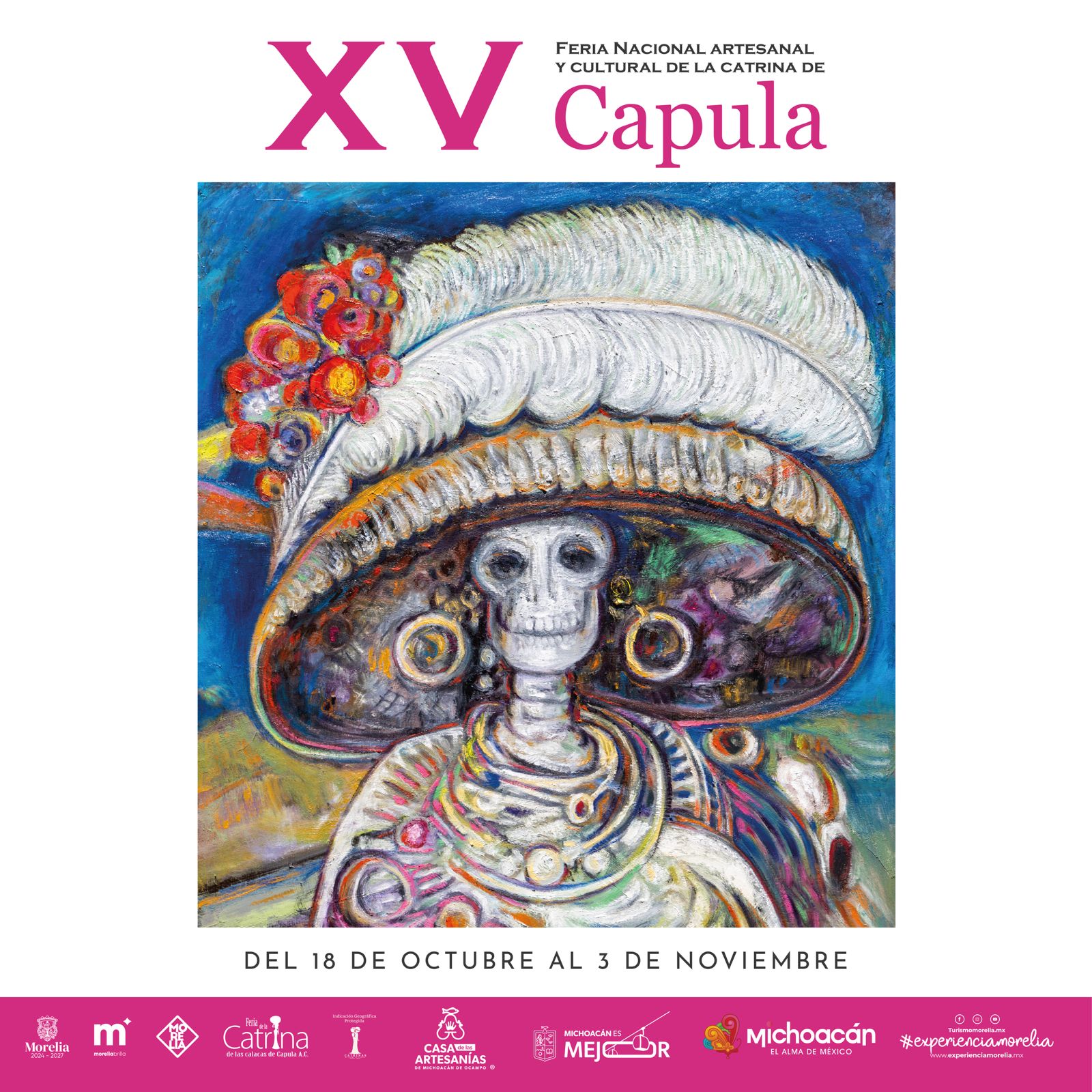 Morelia, Michoacán, 17 de octubre de 2025.- El talento, ingenio y colorido de las catrinas se disfrutarán en Capula dentro de la XV Feria Nacional, Artesanal y Cultural de la Catrina 2025, evento que celebra este año su 15 aniversario.