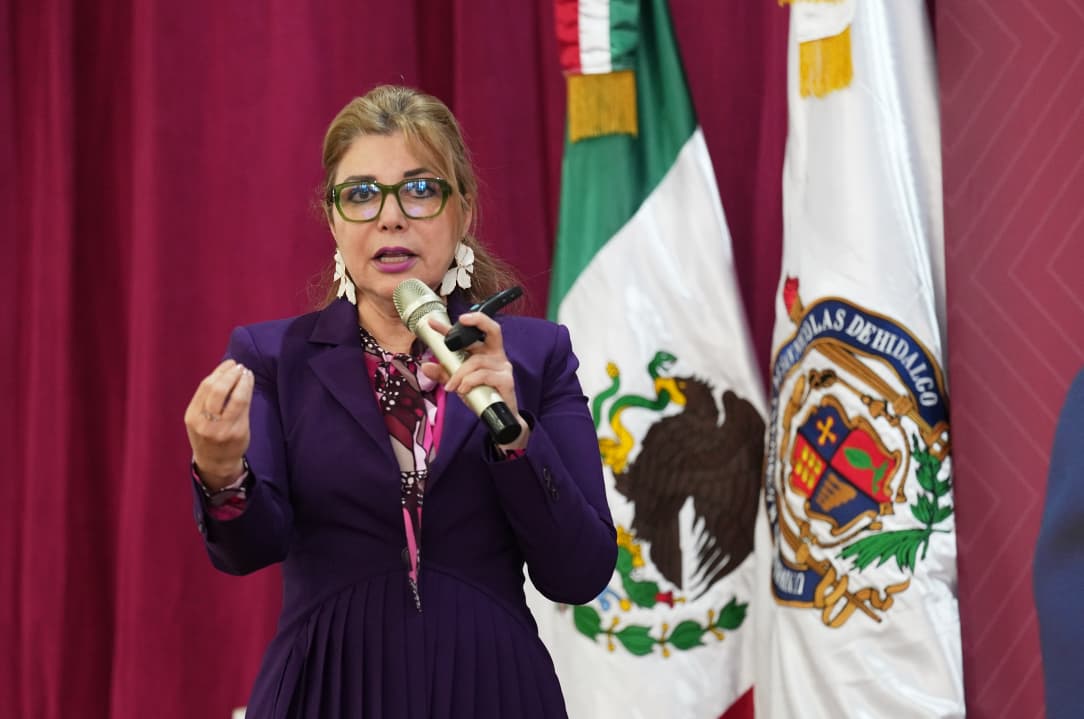 Lo anterior, al brindar la conferencia magistral “Innovación en microcredenciales y solidez académica en Ceneval”, en donde estuvo acompañada por la rectora de la Universidad Michoacana de San Nicolás de Hidalgo (UMSNH), Yarabí Ávila González.