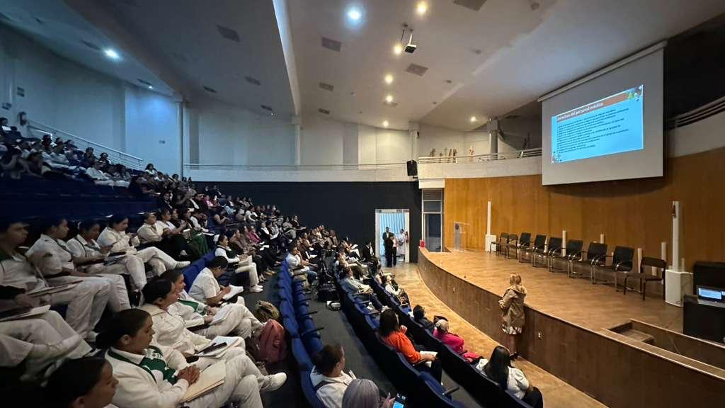 Por su parte, Francisca Barrera Martínez, exdocente del plantel Sahuayo, participó con la conferencia “Alta hospitalaria segura: competencias de enfermería para una educación efectiva”, destacando la relevancia de la preparación técnica y humana del personal de enfermería para garantizar la seguridad del paciente.