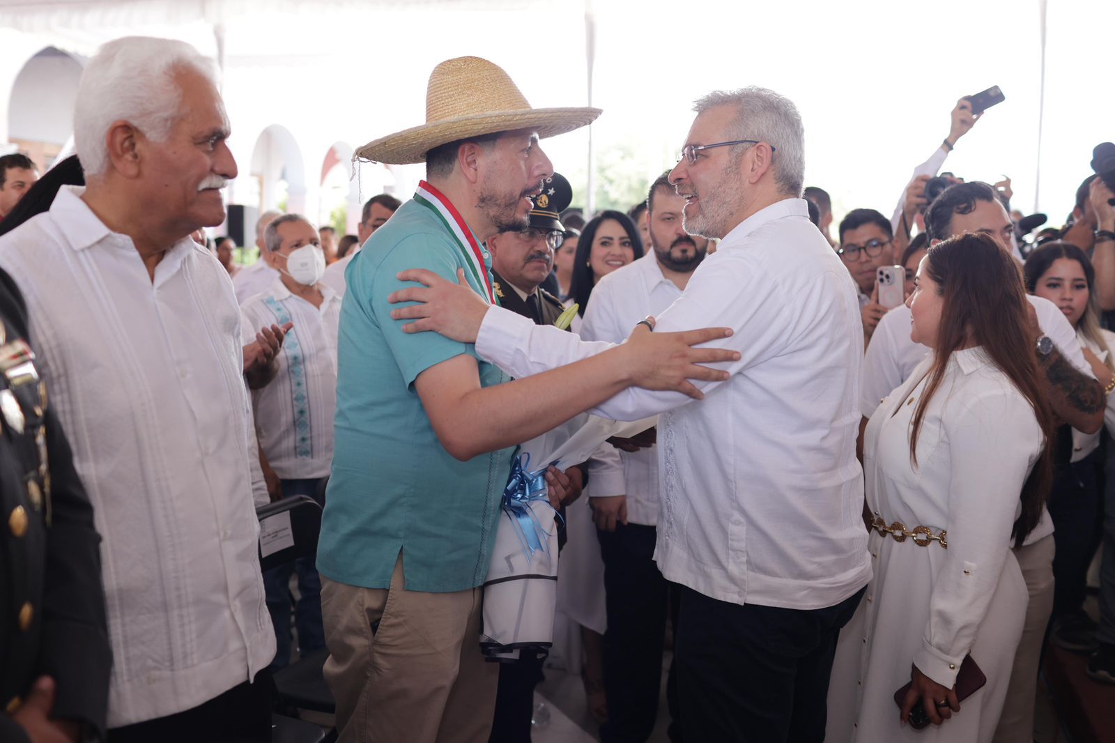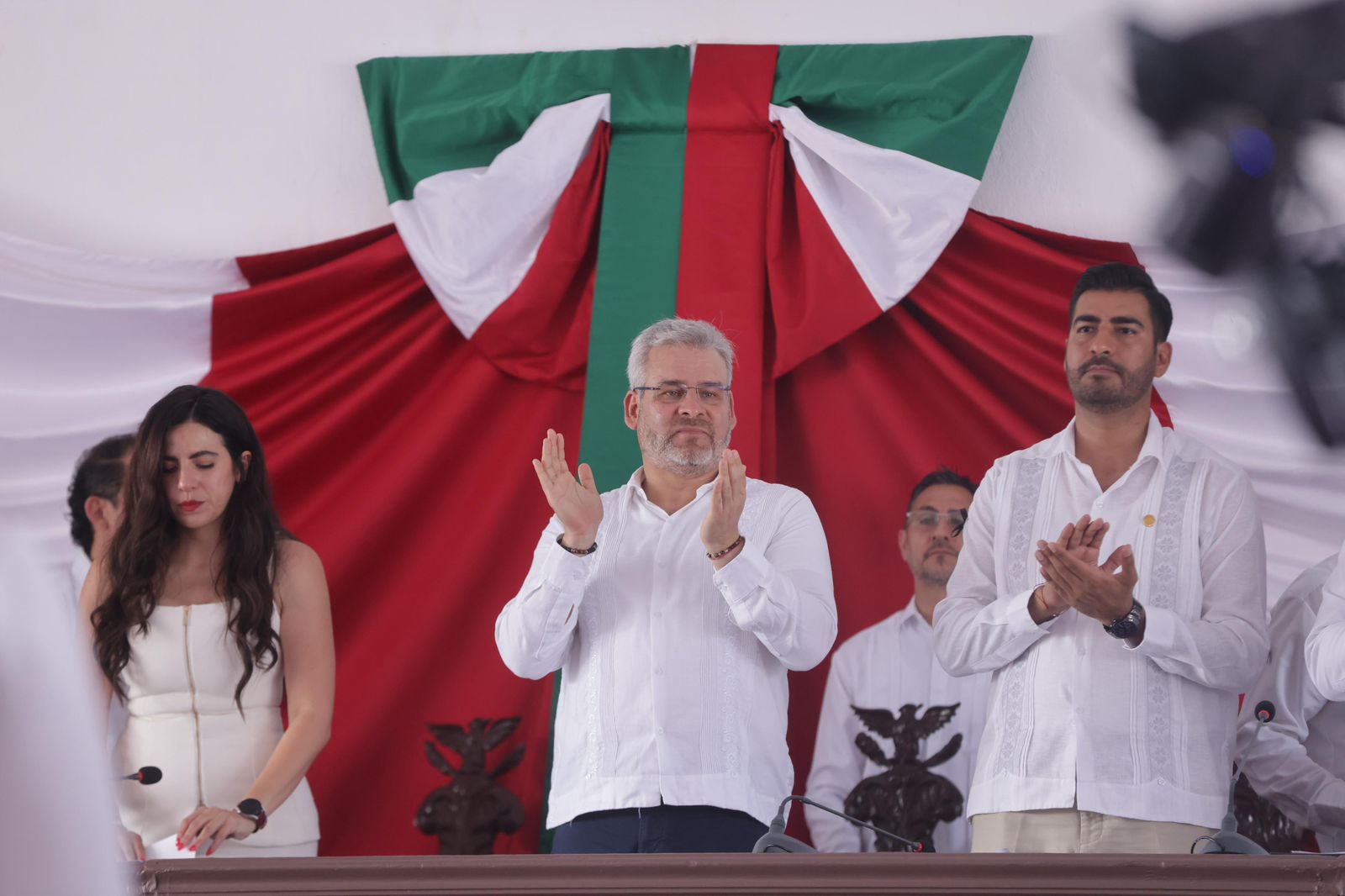 Participaron el secretario de Gobierno, Raúl Zepeda; la alcaldesa de Apatzingán, Fanny Arreola; la diputada presidenta de la Mesa Directiva del Congreso local, Giulianna Bugarini; el magistrado presidente del Poder Judicial de Michoacán, Hugo Gama; el fiscal Carlos Torres Piña; el comandante de la 43 Zona Militar, José Luis Bucio, general de brigada de Estado Mayor; el teniente coronel Sulpicio Gallardo Ramírez, comandante del 27 Batallón de Apatzingán; así como otras autoridades de los cuatro órdenes de gobierno.
