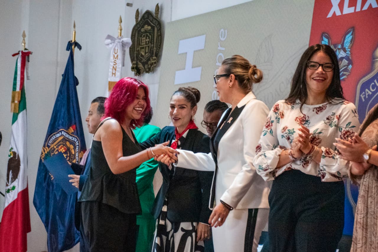 En este marco, manifestó su satisfacción por asistir a esta celebración, en donde dijo, no sólo se festejan los años que cumple la facultad sino toda la trascendencia, la historia y las vidas que se han transformado en la UMSNH con tantas egresadas y egresados que hoy toman decisiones importantes en el estado y en el país.