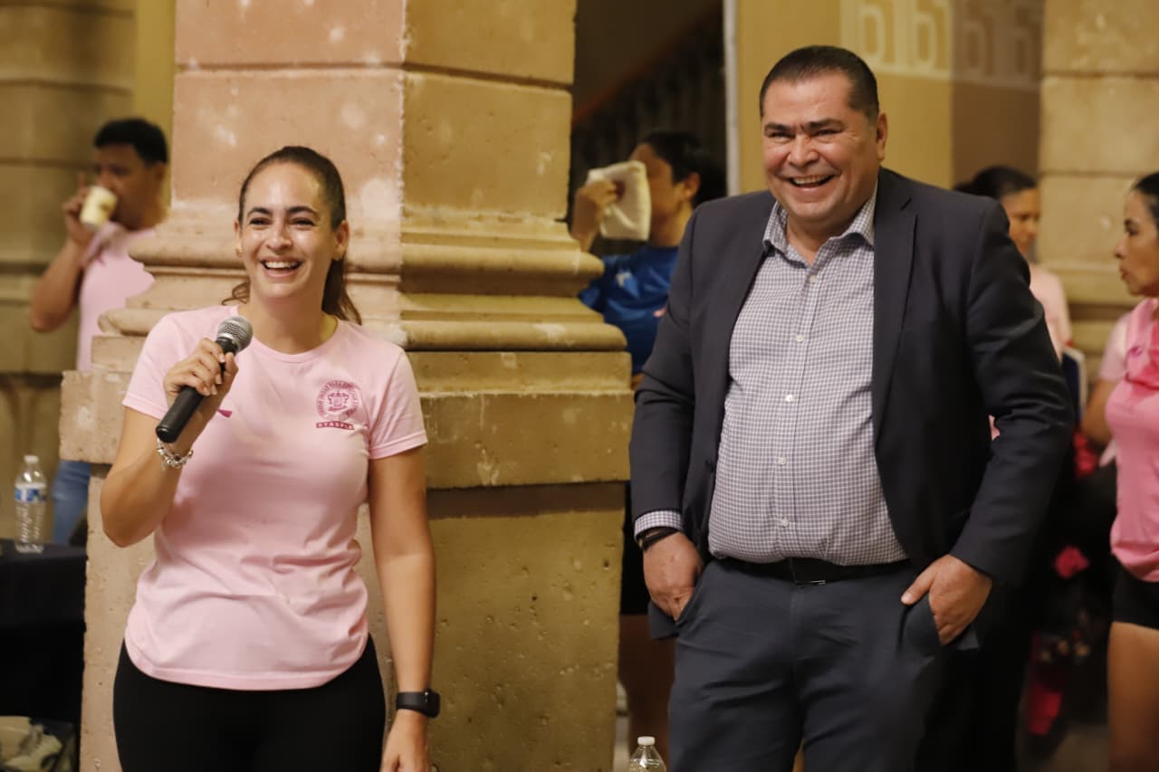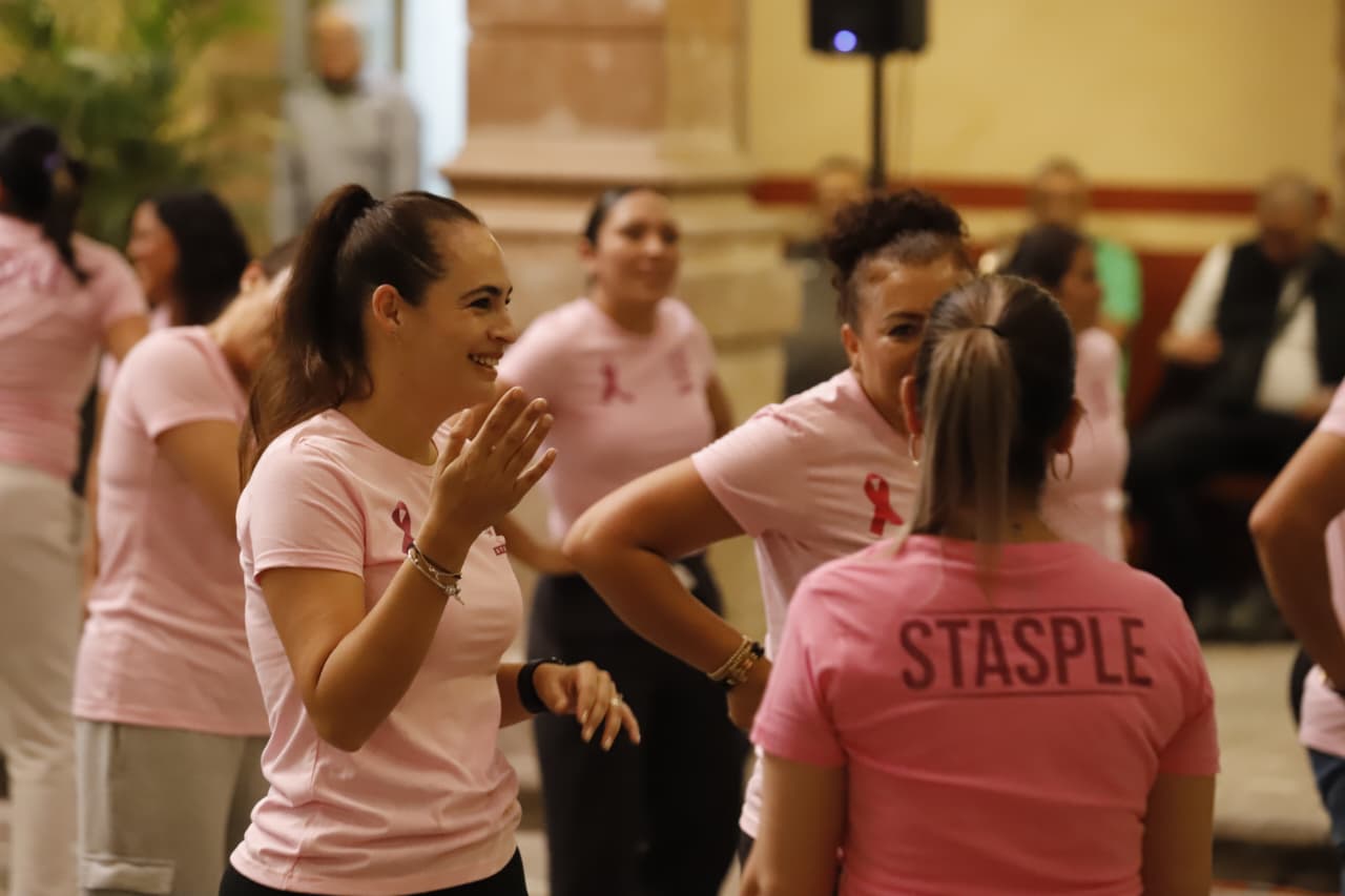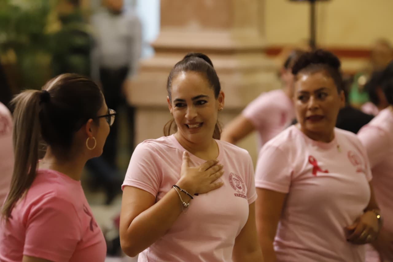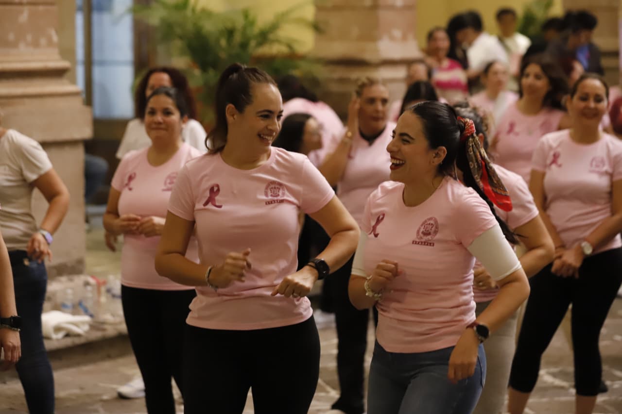 Como parte de las actividades programadas por el mes de la sensibilización sobre el cáncer de mama, las diputadas Giulianna Bugarini Torres, Presidenta de la Mesa Directiva, la legisladora Sandra Arreola Ruíz, acompañadas por Adriana Chávez Serna, Secretaría de Previsión Social, Seguridad e Higiene del STASPLE, siguieron los pasos marcados por los instructores Cielo Moreno y Oliver.