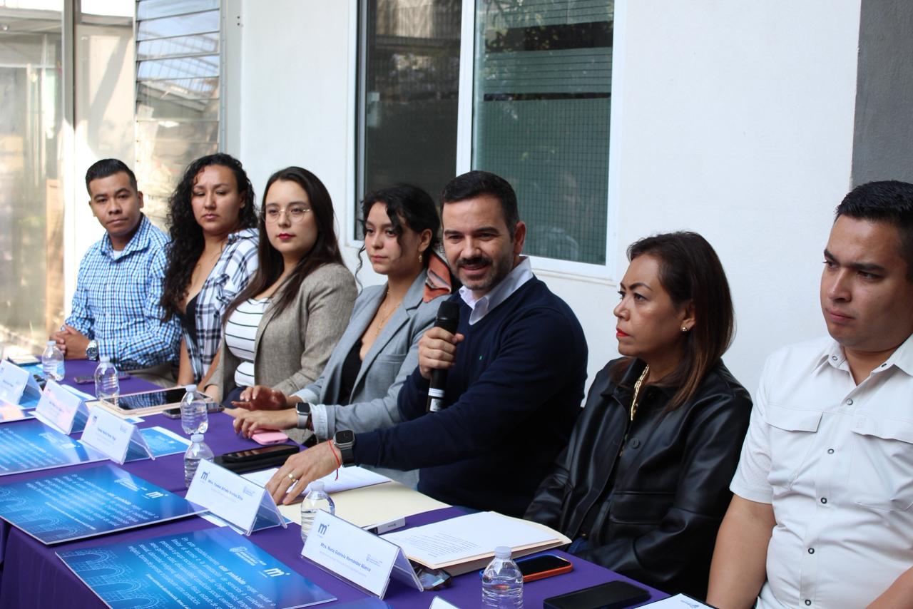 En el marco de las acciones para construir una ciudad más igualitaria, en rueda de prensa el secretario del Ayuntamiento, Yankel Benítez Silva, junto a la secretaria de la Mujer Moreliana para la Igualdad Sustantiva (SEMMUJERIS), Nuria Gabriela Hernández Abarca, presentó el distintivo municipal “Más inclusión, menos discriminación”, una iniciativa que impulsa el presidente Alfonso Martínez Alcázar para fomentar la dignidad humana y combatir la discriminación en la ciudad.