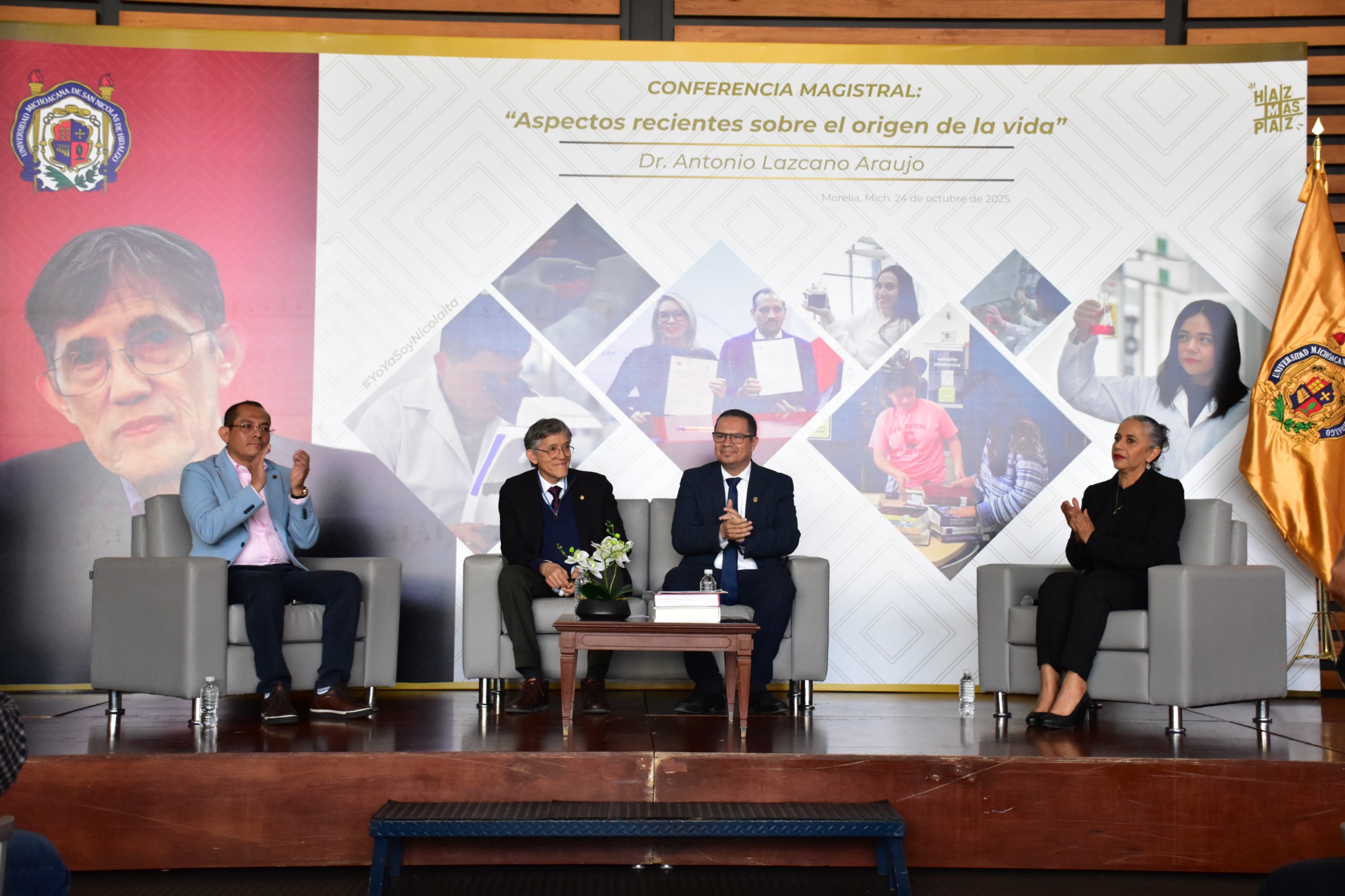 El secretario Académico, Antonio Ramos, indicó que la visita del doctor Lazcano a la institución, permite reafirmar el papel de la Universidad Michoacana como un espacio de encuentro entre la ciencia y el humanismo, “esta casa de estudios se enorgullece contar entre sus Doctorados Honoris Causa con un investigador de su talla, cuya trayectoria académica, ética y docente representa un ejemplo de constancia, disciplina y amor por la ciencia, su ejemplo nos enseña que la investigación rigurosa y la curiosidad intelectual siguen siendo los pilares del progreso y de la libertad”.