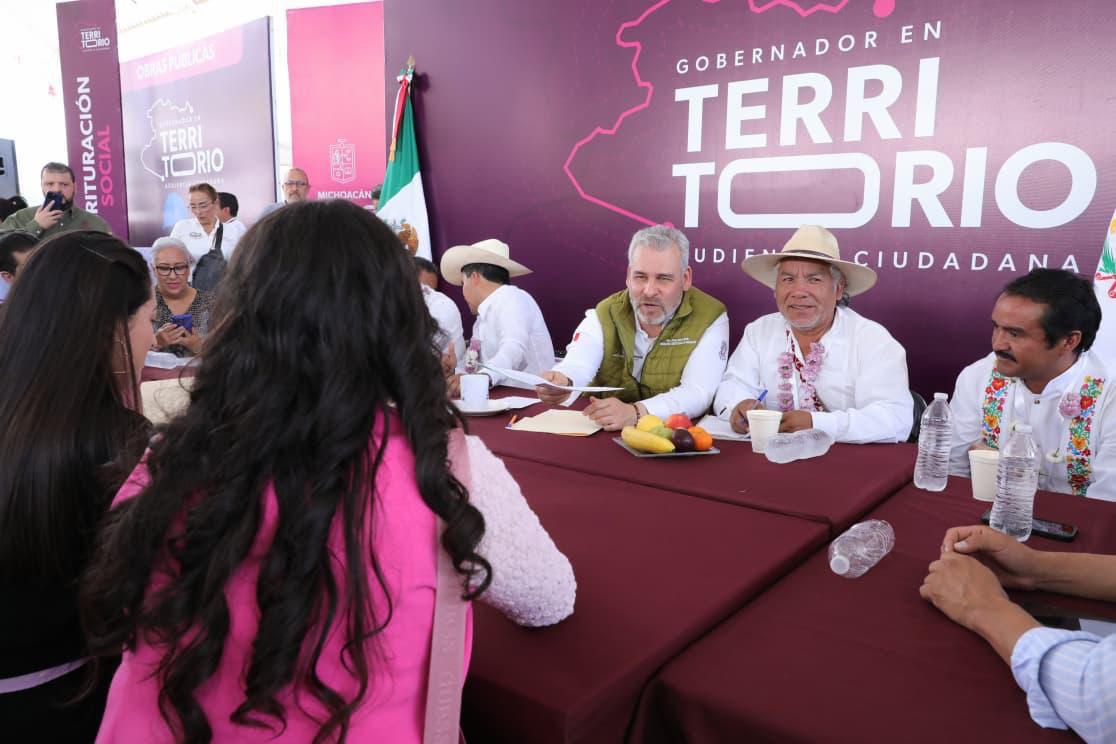 Zitácuaro, Michoacán.- La audiencia pública del gobernador Alfredo Ramírez Bedolla llegó a Donaciano Ojeda, en el municipio de Zitácuaro, una de las 48 comunidades indígenas con autogobierno de Michoacán, donde atendió de manera directa las necesidades de sus habitantes y de localidades cercanas como Francisco Serrato, San Cristóbal y Carpinteros.