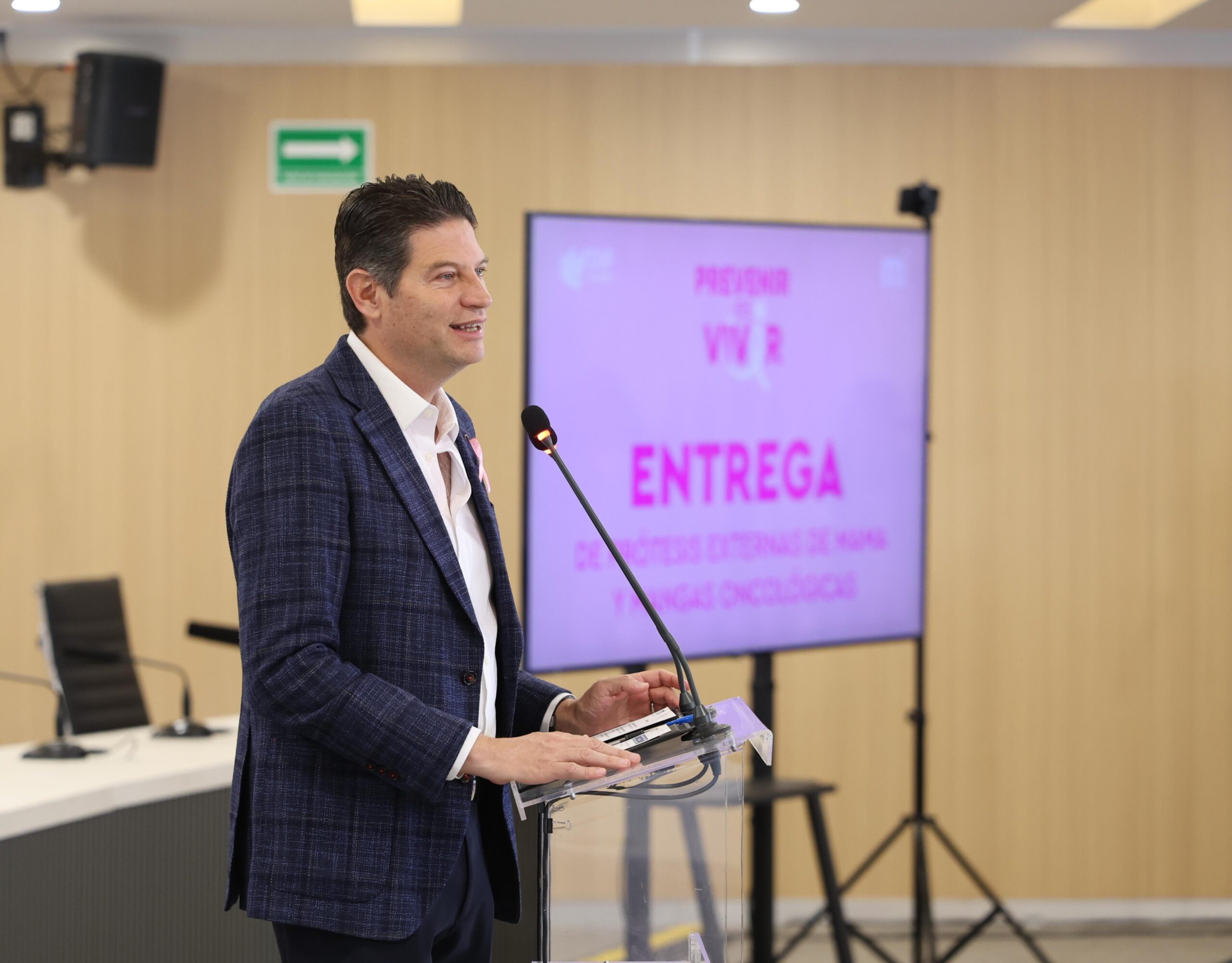 Morelia, Michoacán; 30 de octubre de 2025.- En un emotivo evento que marca un precedente más del trabajo del Gobierno Municipal a favor de la salud, el Presidente Municipal, Alfonso Martínez Alcázar, entregó prótesis de mama y mangas oncológicas a un grupo de mujeres en el marco de las diferentes acciones que impulsa el DIF Morelia que preside, Paola Delgadillo Hernández, a través del programa “Prevenir es vivir”.