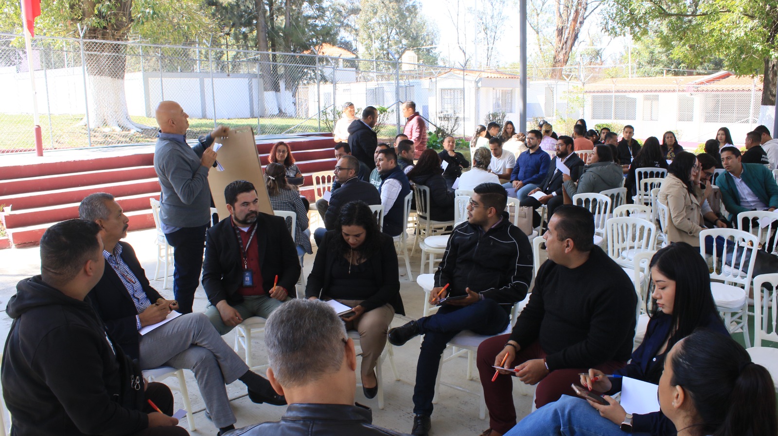 Mediante diversas dinámicas, los participantes intercambiaron opiniones que permitirán la generación de propuestas para mejorar su entorno laboral y, en consecuencia, su salud física y mental, así como los resultados de las acciones en favor de las personas privadas de su libertad y sus familias.