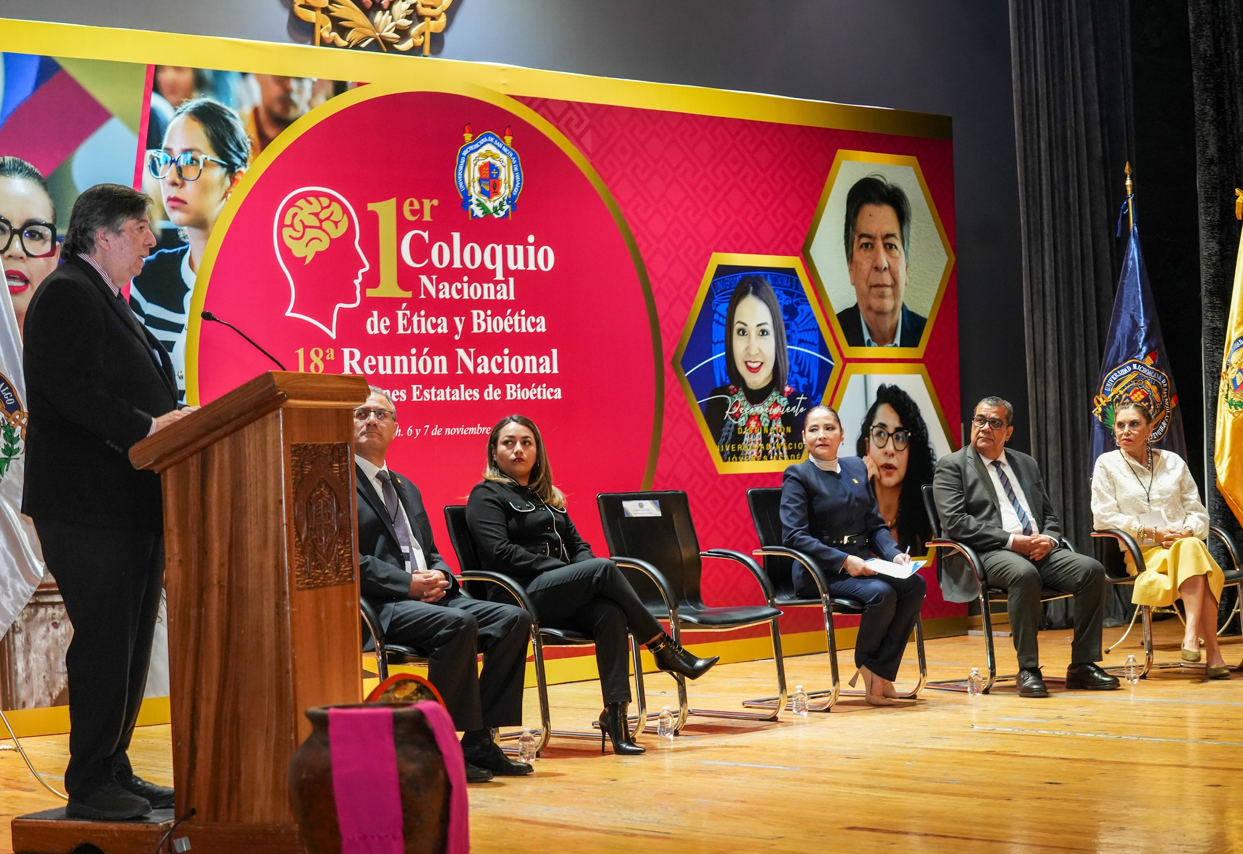 Indicó que para la UMSNH, una institución con más de un siglo de historia y profundas raíces humanistas, participar en este encuentro no es un acto protocolario sino una reafirmación de su esencia y de sus valores, tras referir que “la bioética nos recuerda que la vida no se mide en indicadores sino en dignidad, la ciencia no puede estar desvinculada de la conciencia, el progreso es auténtico sólo cuando es humano”.