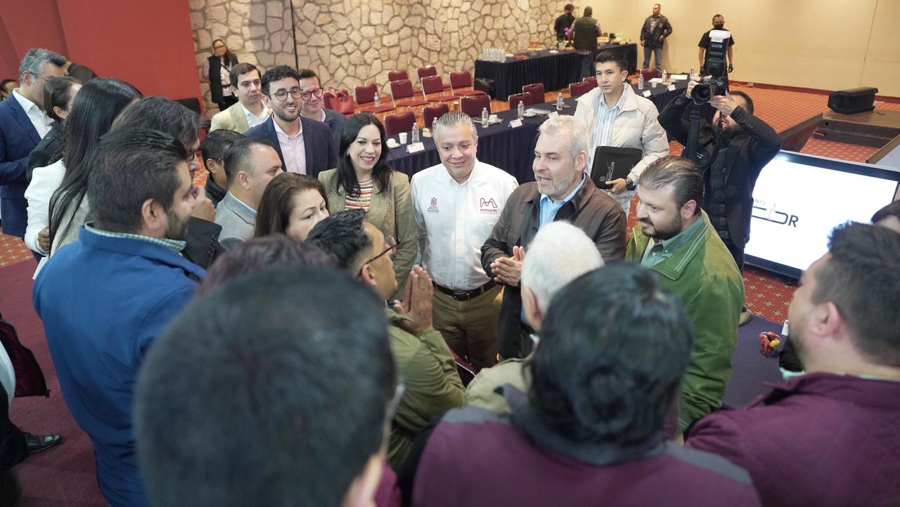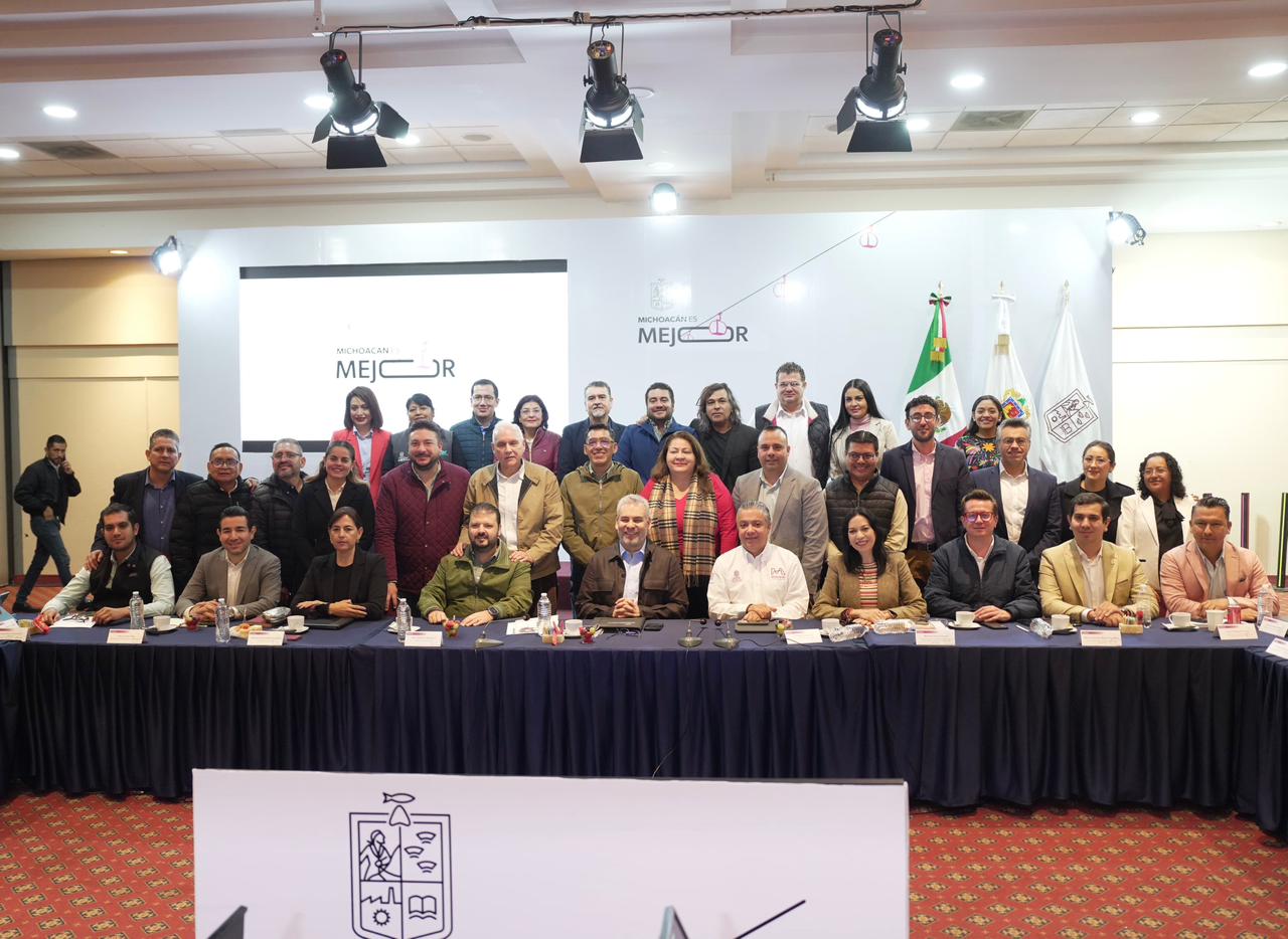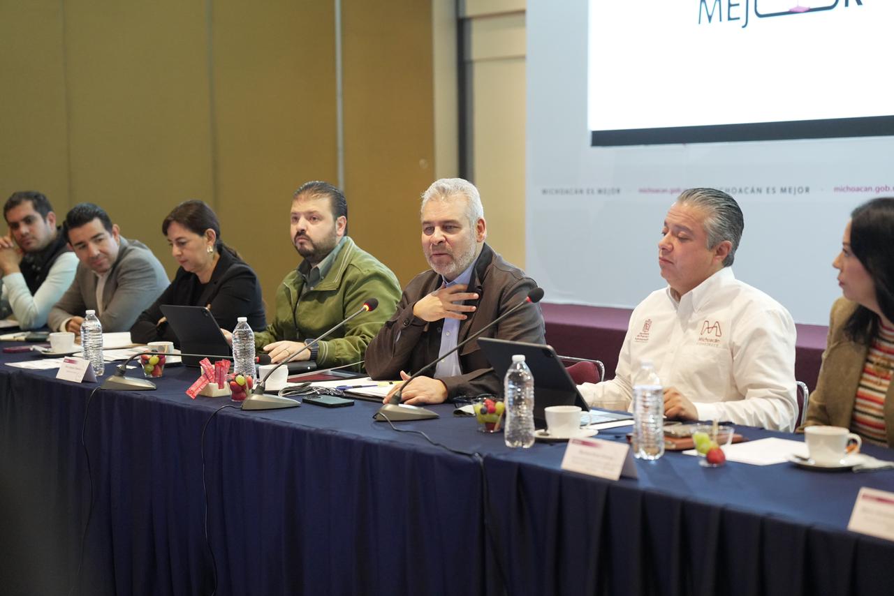 En la reunión también participaron los secretarios de Gobierno, Raúl Zepeda Villaseñor; de Finanzas y Administración, Luis Navarro García; y la titular de Educación, Gabriela Molina, quienes expusieron los alcances, objetivos y estrategias del Plan Michoacán..