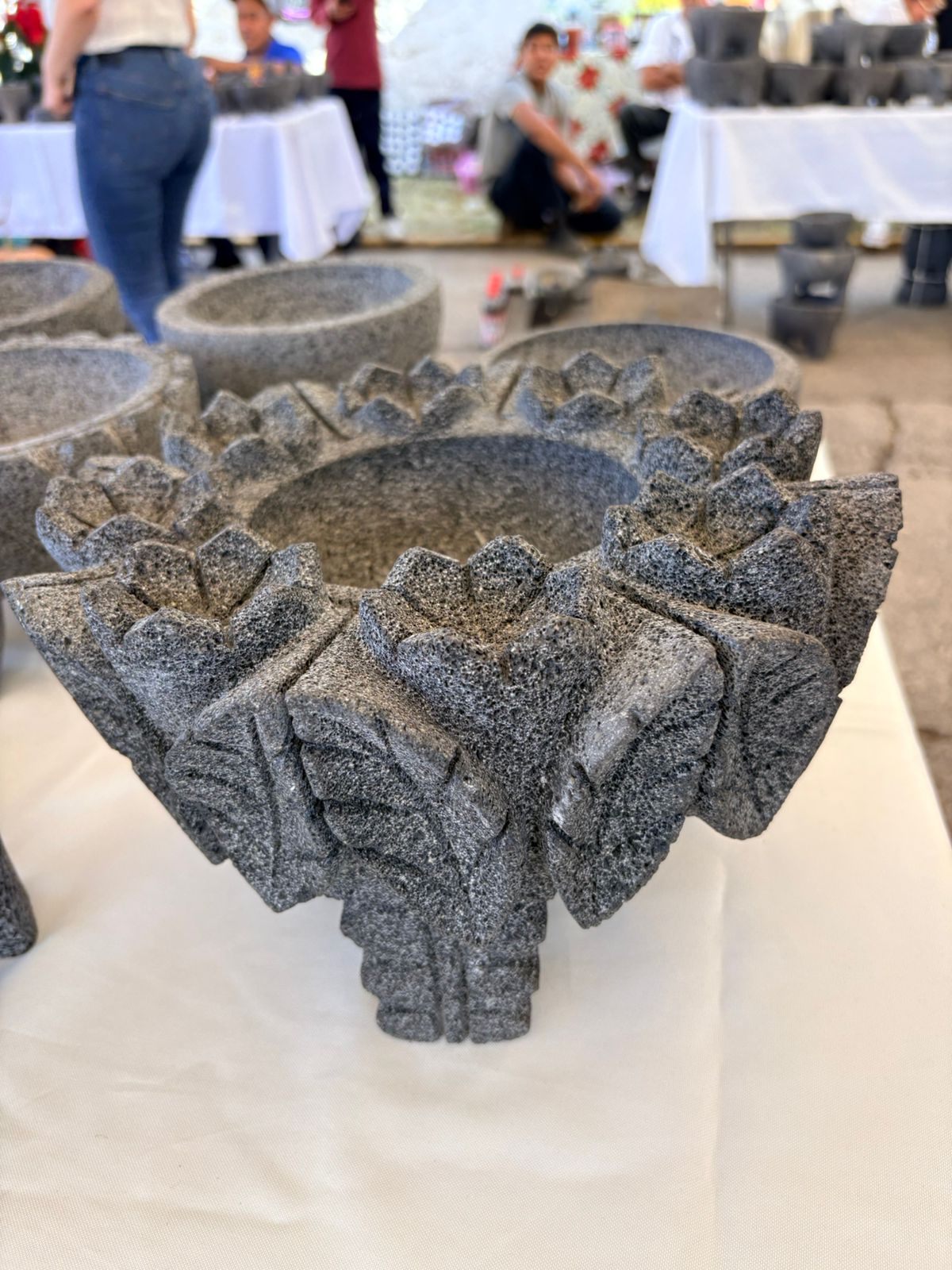 Como parte de la feria, también se llevó a cabo el significativo concurso artesanal, premiando a los artífices en las categorías de molcajete, metate tradicional, molcajete rústico y molcajete decorado, con un total de 21 artesanos participantes y 35 piezas inscritas.