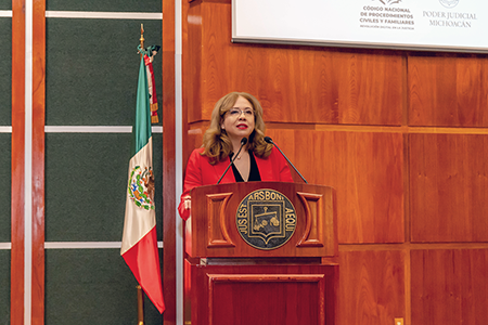 “Para la implementación efectiva del Código Nacional de Procedimientos Civiles y Familiares (CNPCyF) se prevé establecer procesos de profesionalización y actualización permanente y periódica para todo el personal, que garanticen un alto nivel de calidad en su desempeño, con base en ello, la Comisión Multidisciplinaria para su implementación en el Poder Judicial de Michoacán, ha identificado como prioritaria la capacitación en los cambios introducidos en este ordenamiento”, destacó la magistrada Monserrat Pérez Marín quien funge como coordinadora de la Comisión, durante la inauguración del Foro de análisis y formación judicial en el Nuevo CNPCyF.