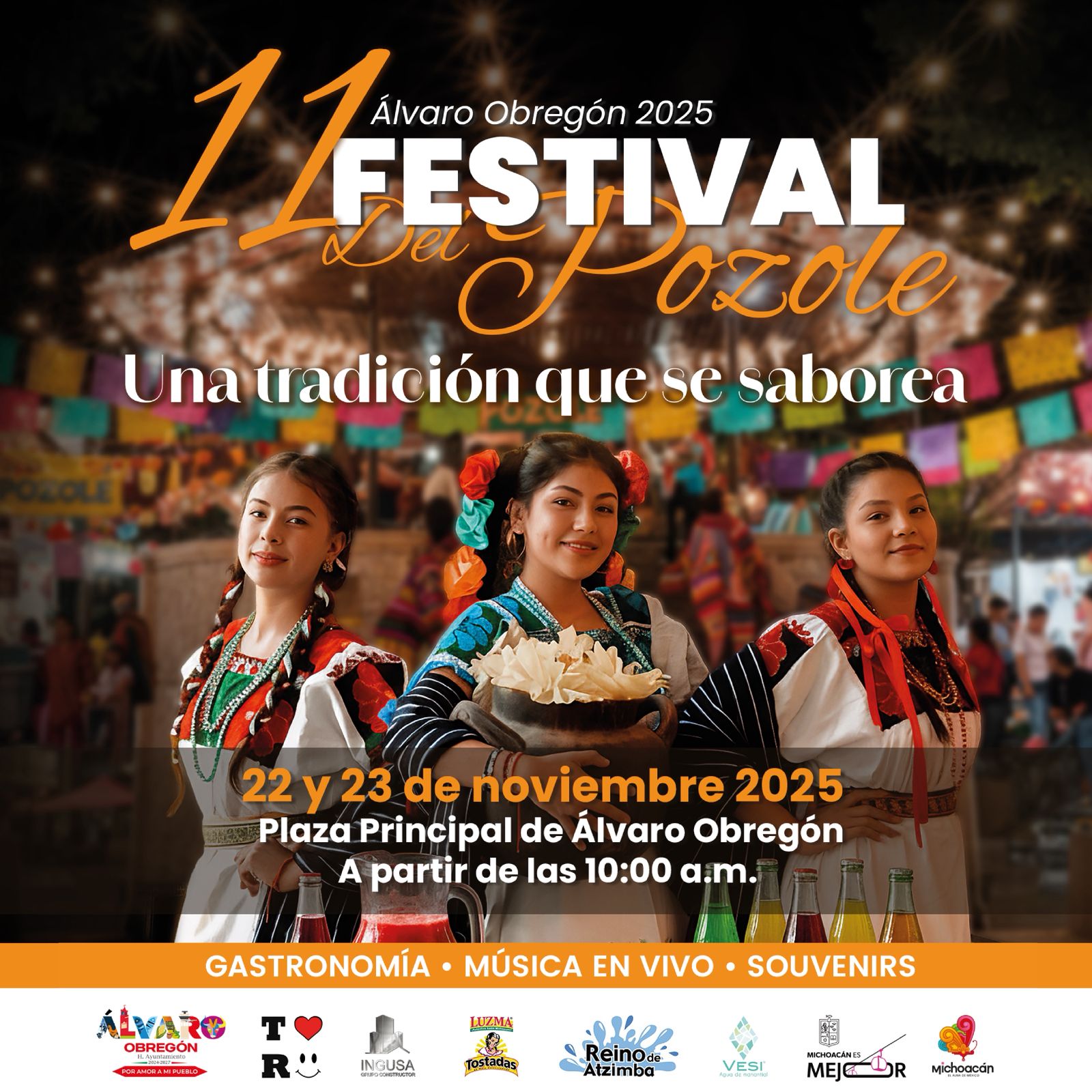 Este 2025 se celebrá la edición 11, con una variedad de pozole verde, blanco y rojo, de cerdo, pollo, camarón, mariscos, menudo y rana, aunque los asistentes también podrán encontrar pan, atoles, postres y bebidas preparadas.