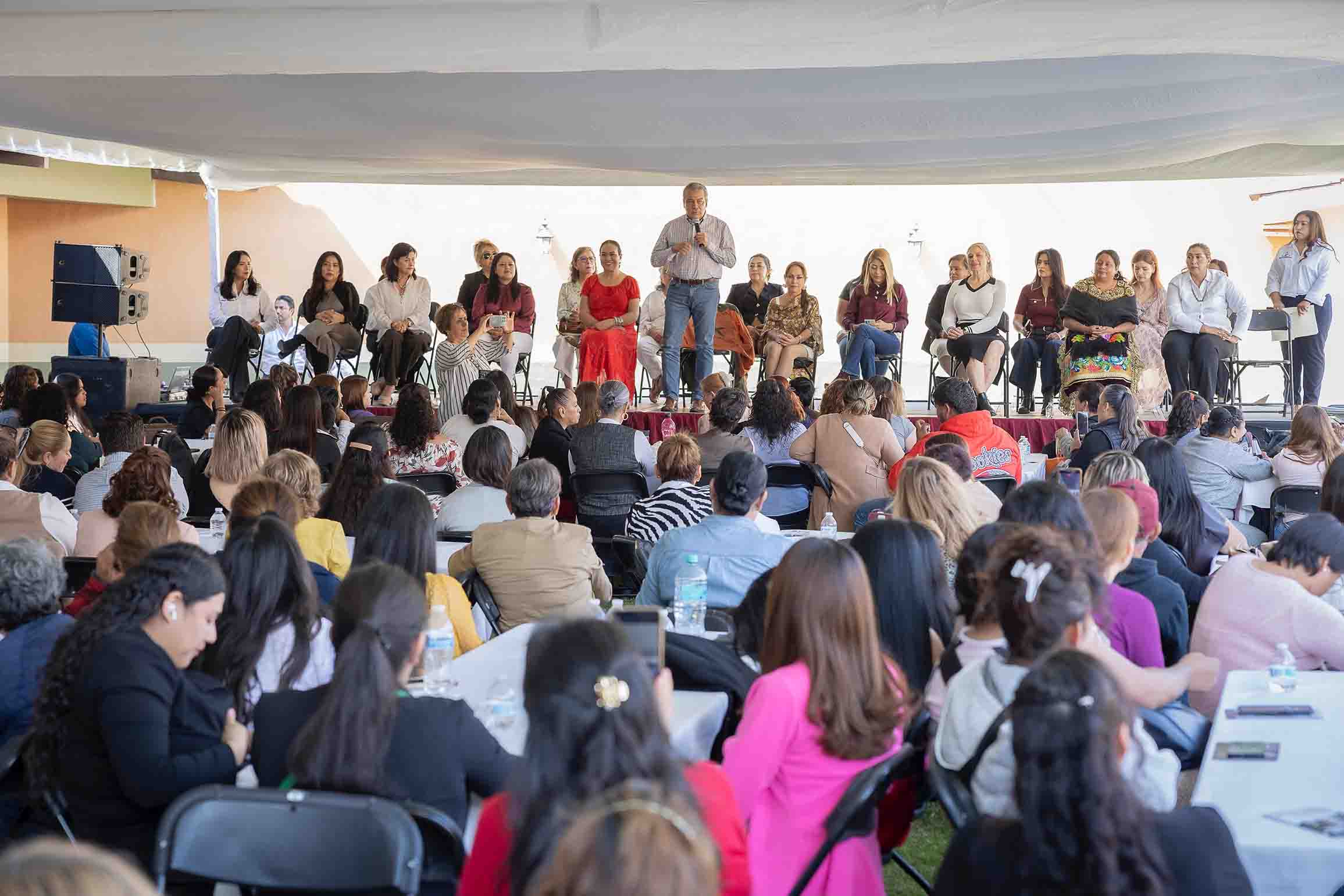 El encuentro, tuvo como fin compartir las acciones que se contemplan para el sector de mujeres dentro del Plan Michoacán, como los 50 mil créditos a la palabra que se entregarán en el 2026, el incremento a 10 mil mujeres tejedoras de la patria para realizar actividades en su comunidad, así como la apertura de un Centro LIBRE en cada uno de los 113 municipios de la entidad.