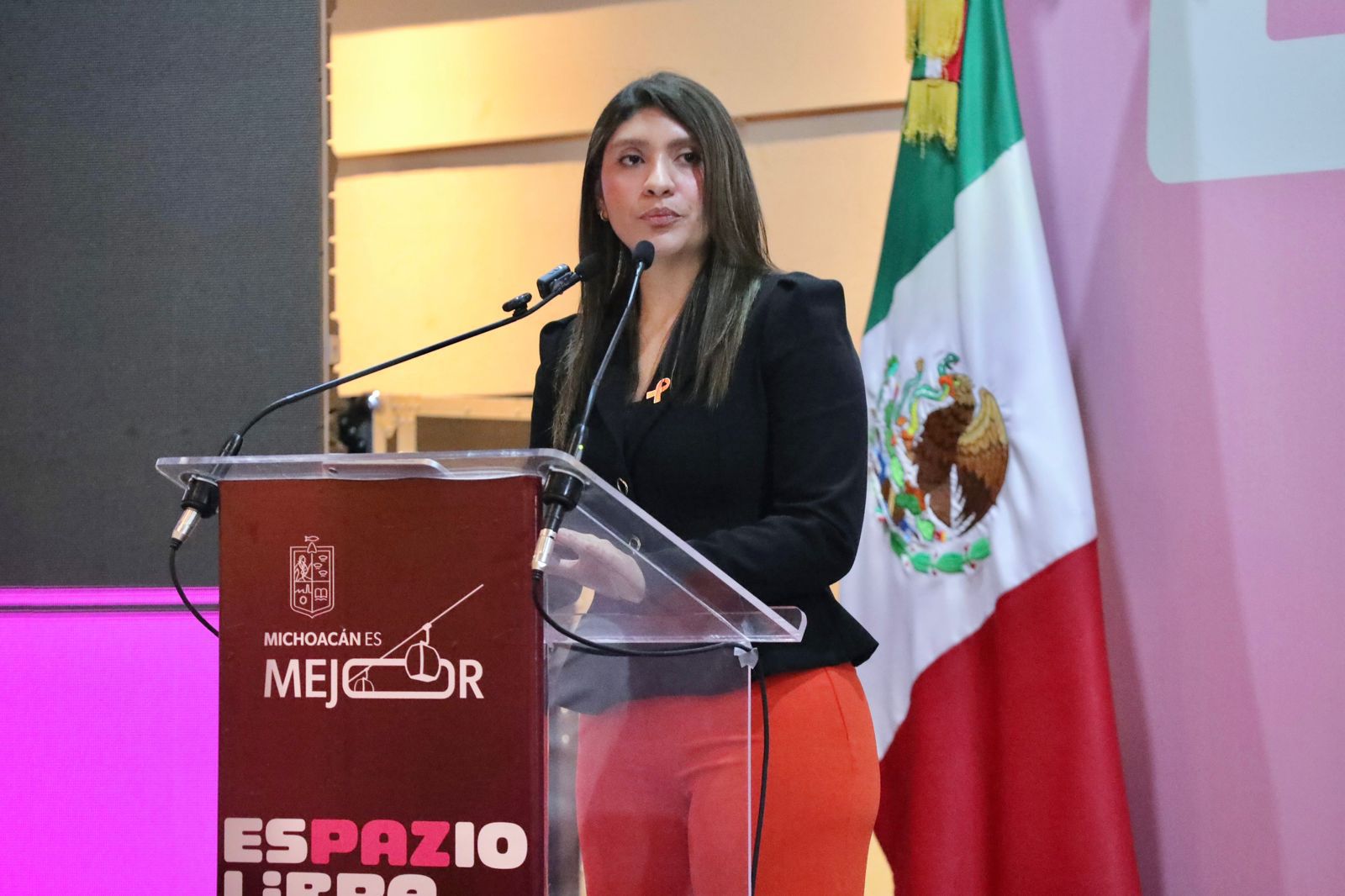 Por su parte, la secretaria de Igualdad Sustantiva y Desarrollo de las Mujeres Michoacanas, Alejandra Anguiano, indicó que con la estrategia “Espazio libre de violencia” se reconoce que los centros de trabajo donde labore una mujer se garantiza una vida sin acoso, hostigamiento y violencia sexual, física o psicológica.