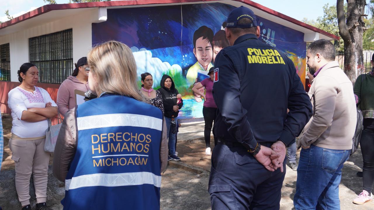 En cumplimiento de su compromiso con la seguridad y la tranquilidad de la ciudadanía, Policía Morelia informa que, en coordinación con la Comisión Estatal de Derechos Humanos de Michoacán (CEDH) y bajo la presencia del titular de dicha institución, Josué Alfonso Mejía Pineda; así como del Comisario, Isaac Olguín Guerrero, se realizó un recorrido por la localidad de El Porvenir y una reunión con madres y padres de familia de la Escuela Primaria Federal Benito Juárez.