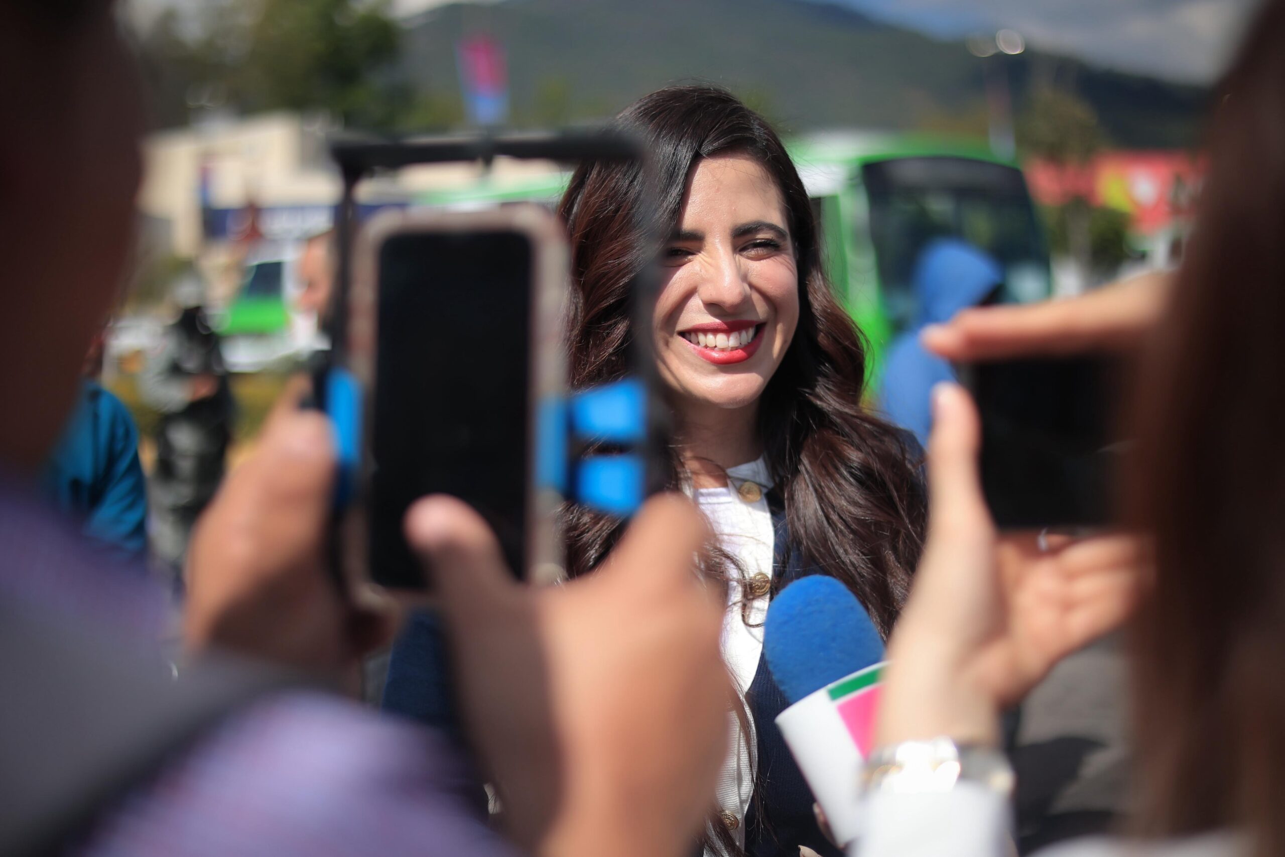 Morelia, Michoacán.- La diputada Giulianna Bugarini, Presidenta del Congreso del Estado y de la Comisión de Presupuesto y Cuenta Pública, acompañó este viernes al gobernador Alfredo Ramírez Bedolla en la puesta en operación de 80 nuevas unidades de transporte público en Uruapan, un paso decisivo para modernizar la movilidad en la ciudad.