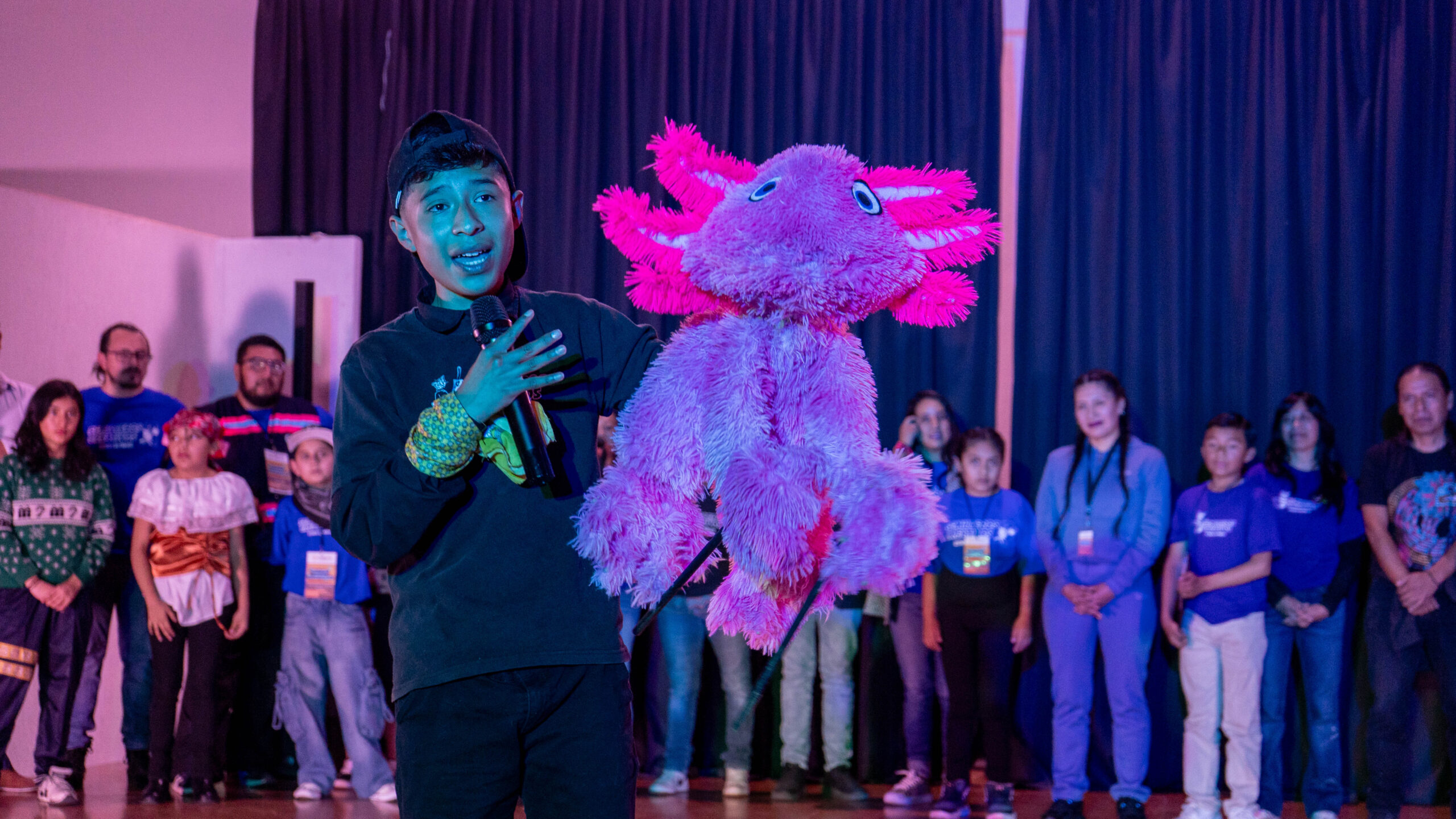 El evento, que llevó por título “Fraternidad entre Infancias”, reunió a más de 280 niñas, niños y jóvenes de nueve Semilleros Creativos, quienes, a través de diversas presentaciones artísticas, mostraron el trabajo que realizaron en el año a través del programa Cultura Comunitaria. Las actividades incluyeron teatro, títeres, danza, creación literaria, dibujo, pintura, modelado, fotografía, artes visuales y performance, disciplinas en las que las infancias desarrollaron habilidades, expresiones y formas de colaboración comunitaria.