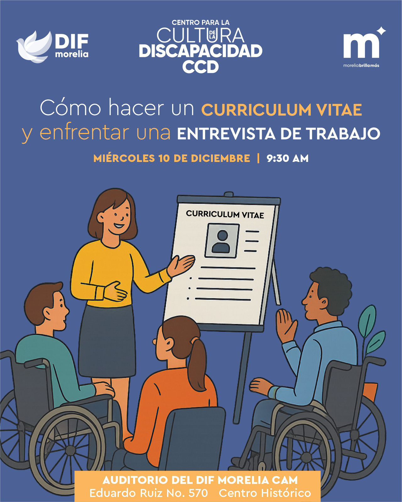 El Departamento para la Cultura de la Discapacidad del DIF Morelia, impulsa estas sesiones con enfoque accesible, de modo que cualquier persona interesada pueda fortalecer su preparación laboral. La iniciativa integra recomendaciones actualizadas sobre estructura de currículum, criterios que suelen valorar los reclutadores y estrategias para comunicar habilidades durante una entrevista.