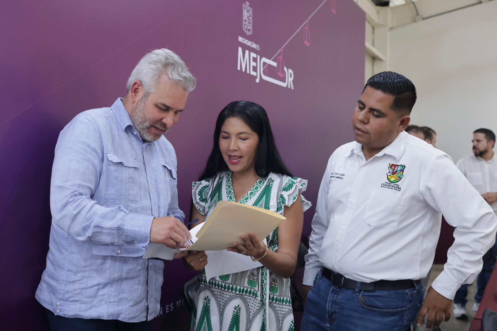Coahuayana, Michoacán, 15 de diciembre de 2025.- El gobernador Alfredo Ramírez Bedolla entregó apoyos económicos para la rehabilitación de viviendas y comercios de víctimas afectados por la explosión del pasado 6 de diciembre en el municipio de Coahuayana.