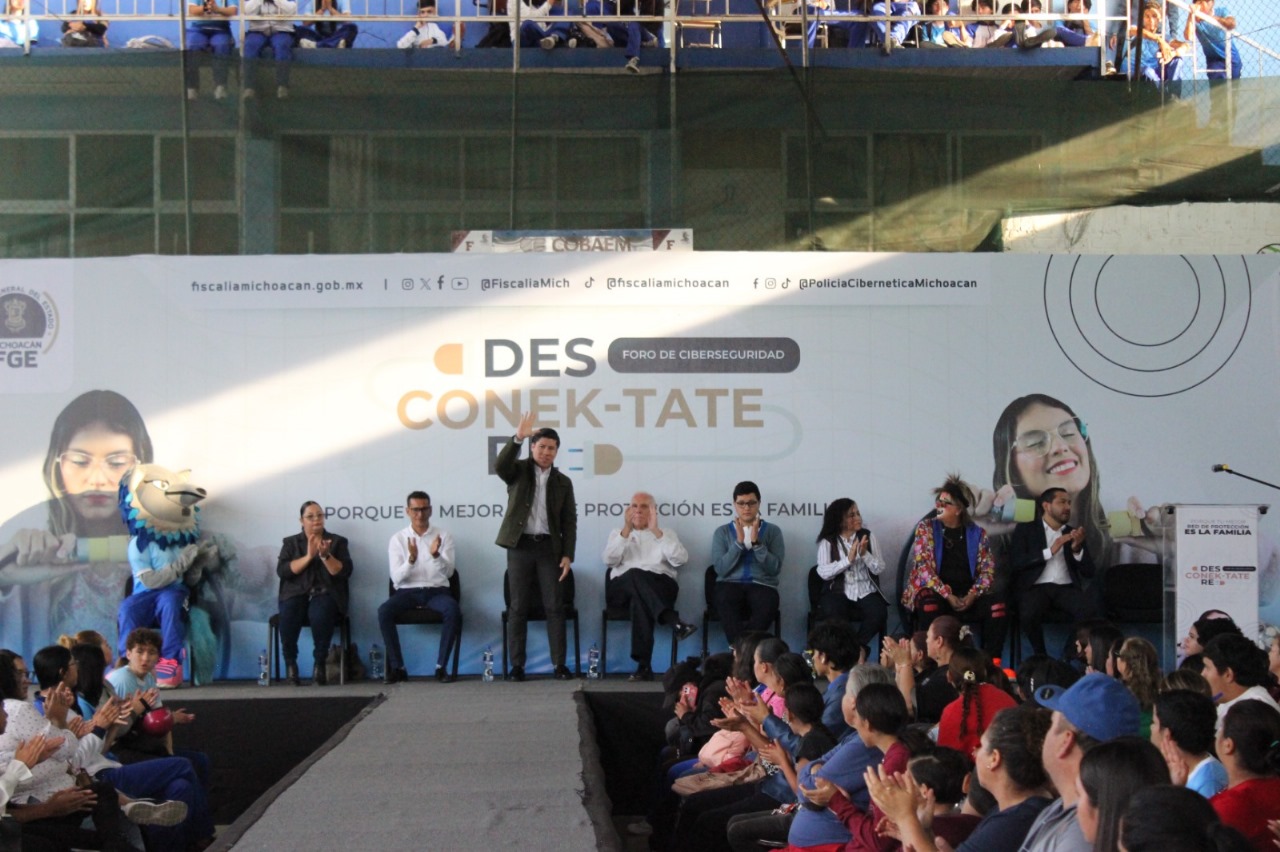 Zamora, Michoacán.- Con el propósito de prevenir delitos cometidos a través de la WEB y fomentar el uso responsable de las redes sociales, la Fiscalía General del Estado de Michoacán (FGE) llevó a cabo el foro denominado “DESKONEC-TATE y REKONEC-TATE”, dirigido a estudiantes del COBAEM Zamora.