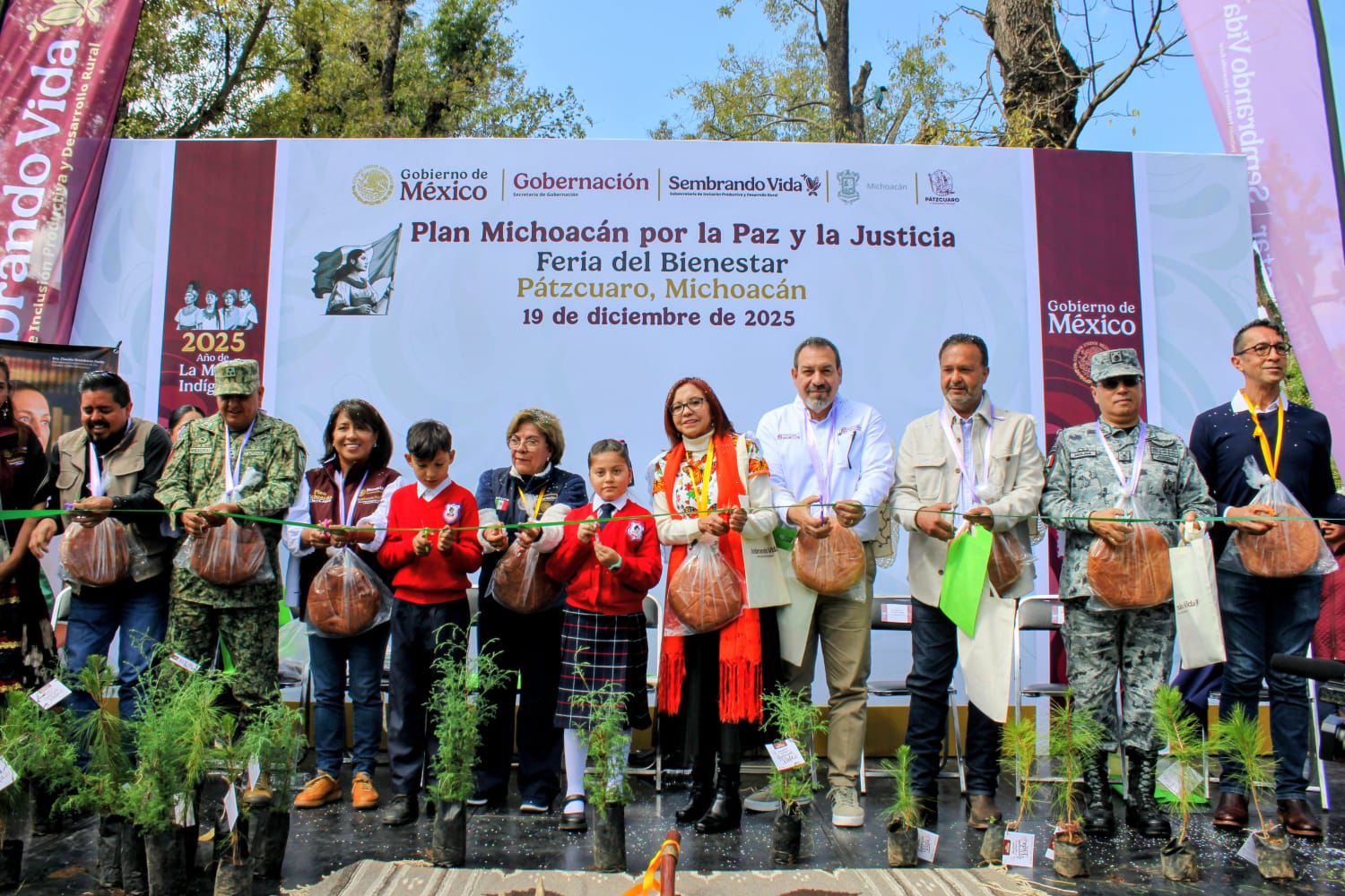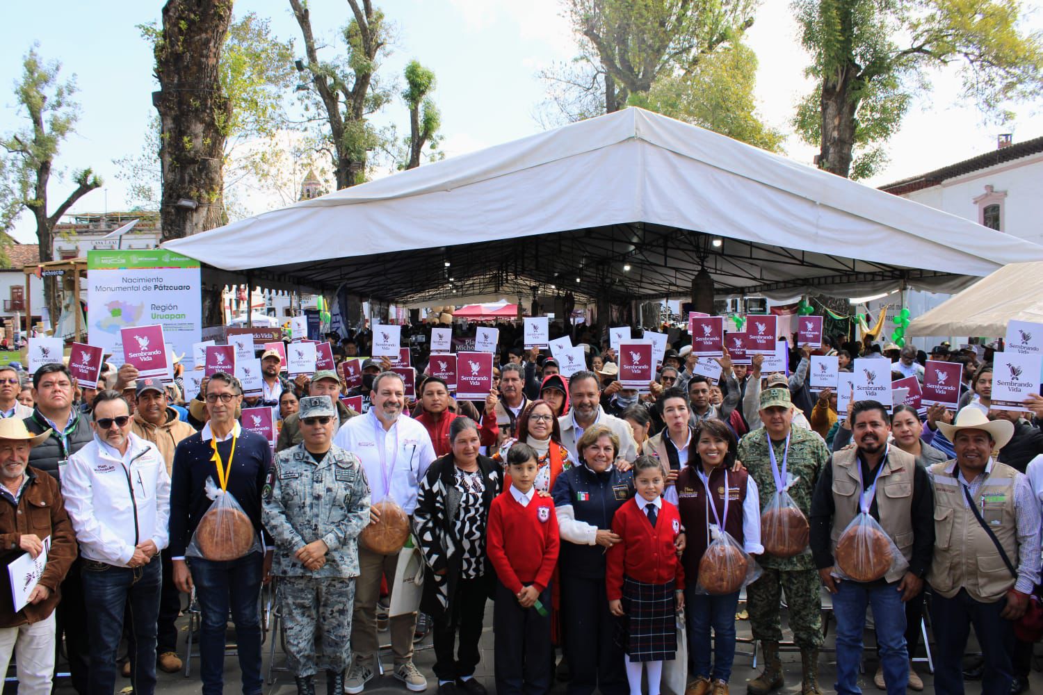 Pátzcuaro, Michoacán.- En el marco del Plan Michoacán por la Paz y la Justicia, se llevó a cabo en Pátzcuaro la última Feria del Bienestar de esta primera etapa. Durante el evento, se formalizó la entrega de 6 mil 514 apoyos del programa Sembrando Vida, mediante el cual las familias beneficiadas percibirán un pago mensual de 6 mil 450 pesos.