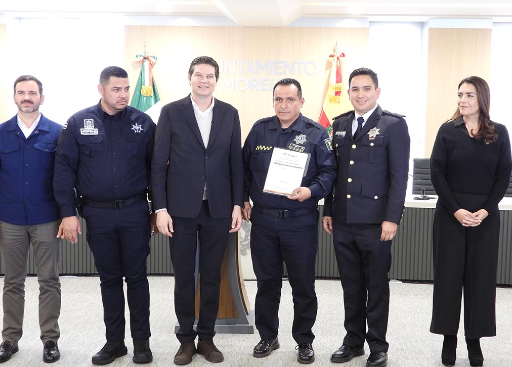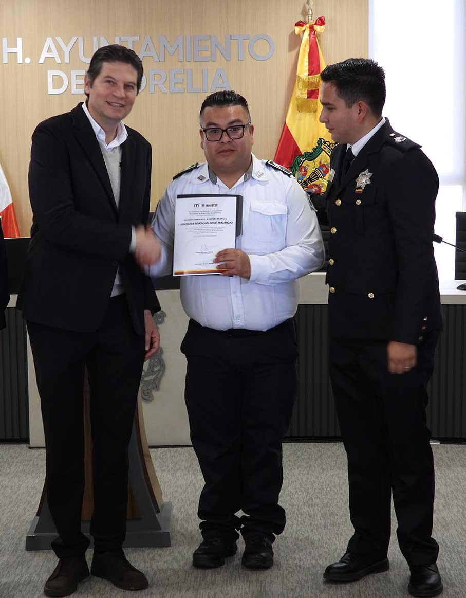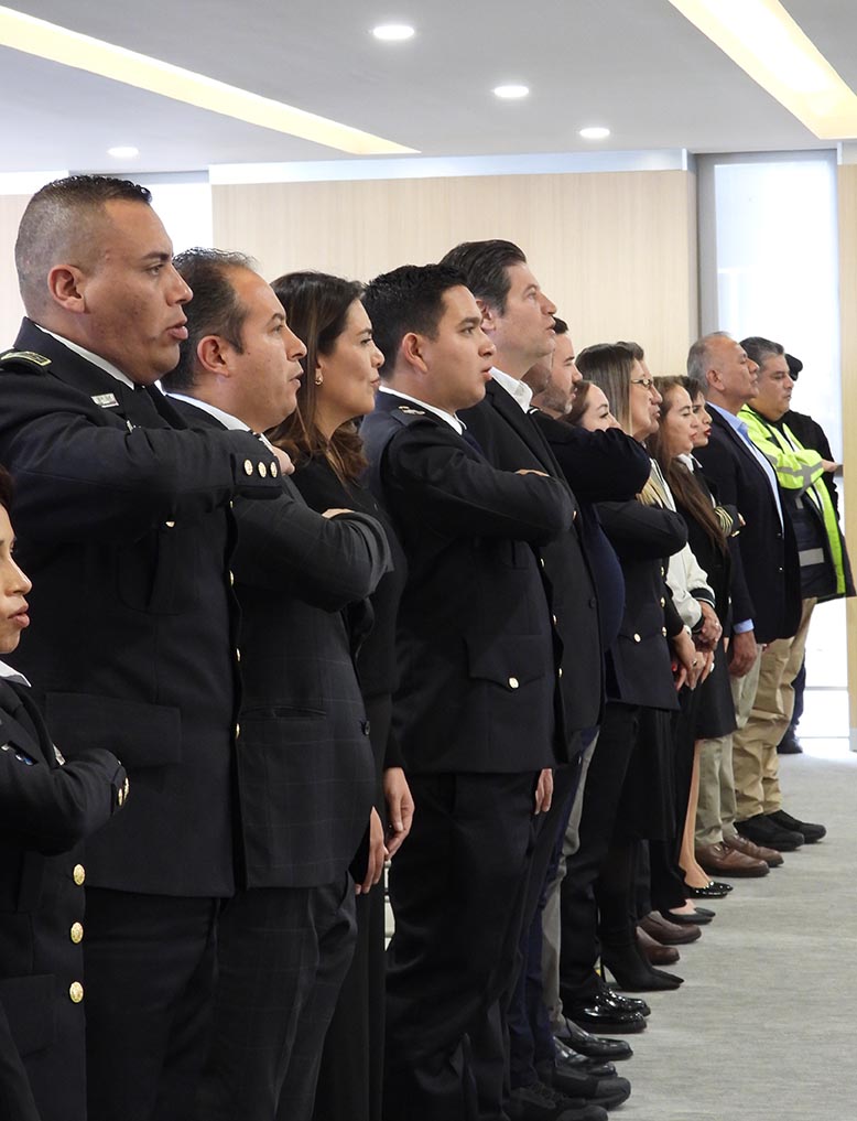 Al cierre de la ceremonia, el Ayuntamiento invitó a los asistentes a trasladarse a la sala de Cabildo para continuar con la entrega del memorándum por el décimo aniversario y los reconocimientos al Mérito Policía 2025, dirigidos a elementos que han destacado en el desempeño de sus funciones.