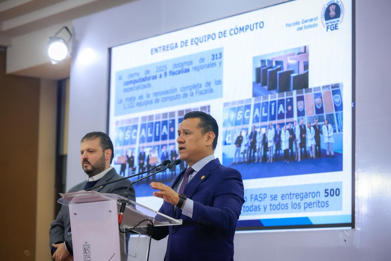 Así mismo, Torres Piña reconoció los avances en el fortalecimiento institucional de la FGE, particularmente en materia de equipamiento y modernización tecnológica. Señaló que, al cierre de 2025, se dotó de 313 equipos de cómputo a nueve fiscalías regionales y especializadas, como parte de la meta de renovar en su totalidad los mil 122 equipos con los que cuenta la institución. Añadió que, mediante el programa del Fondo de Aportación para la Seguridad Pública (FASP), se entregaron 500 batas a las y los peritos adscritos a la Coordinación de Servicios Periciales.