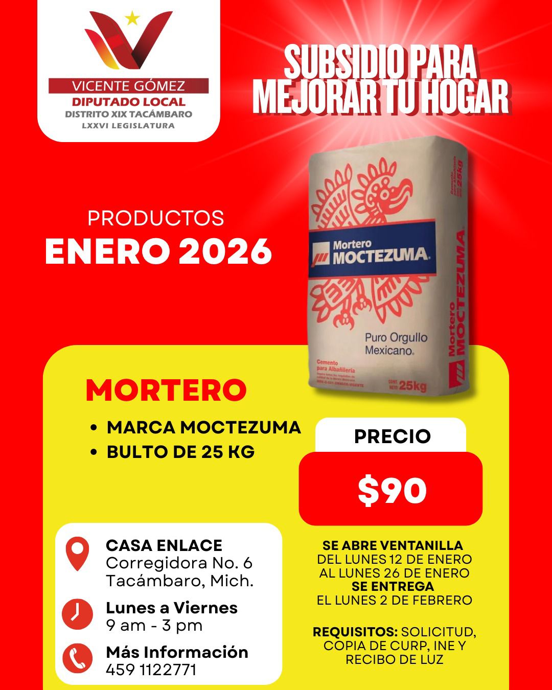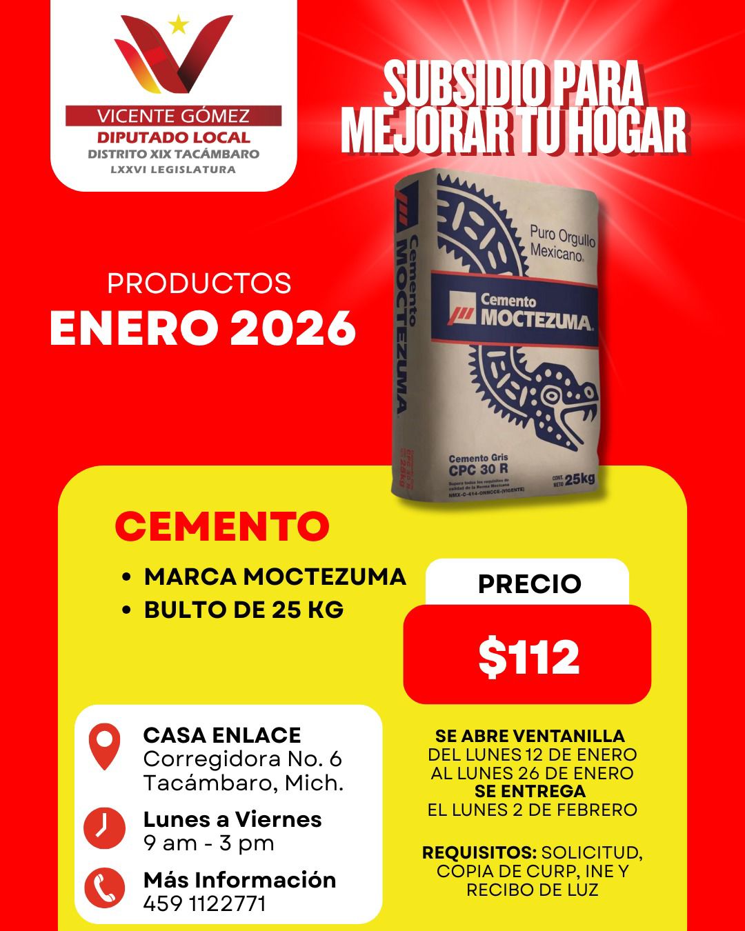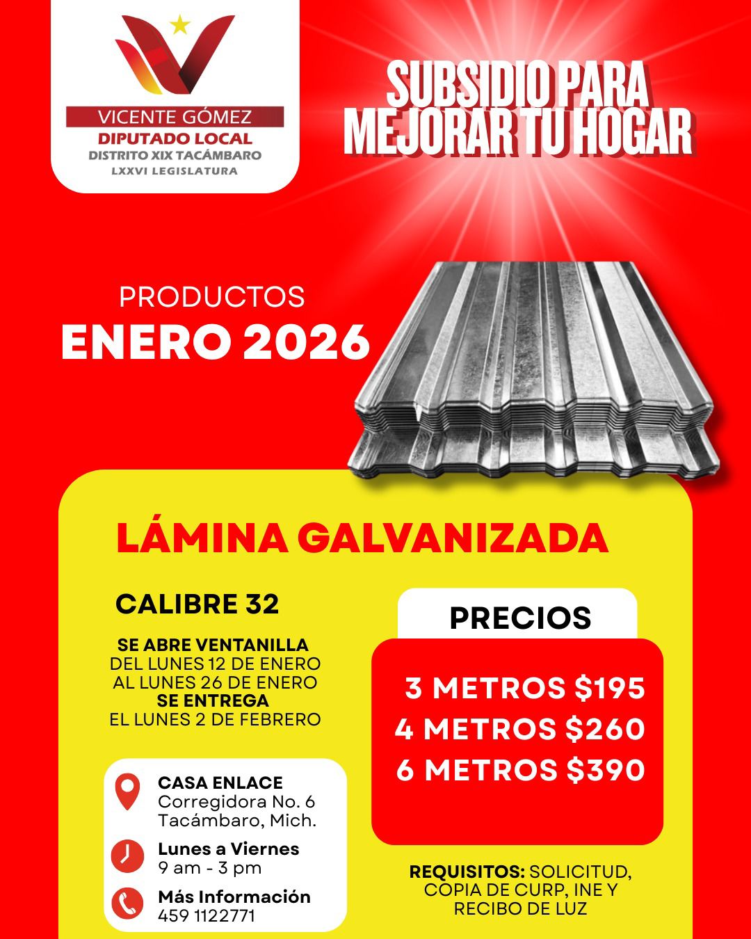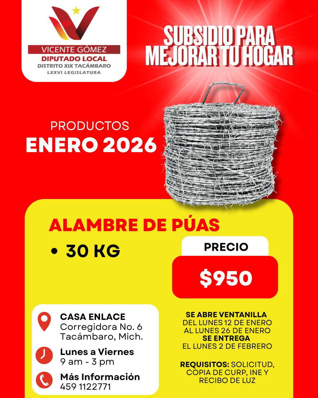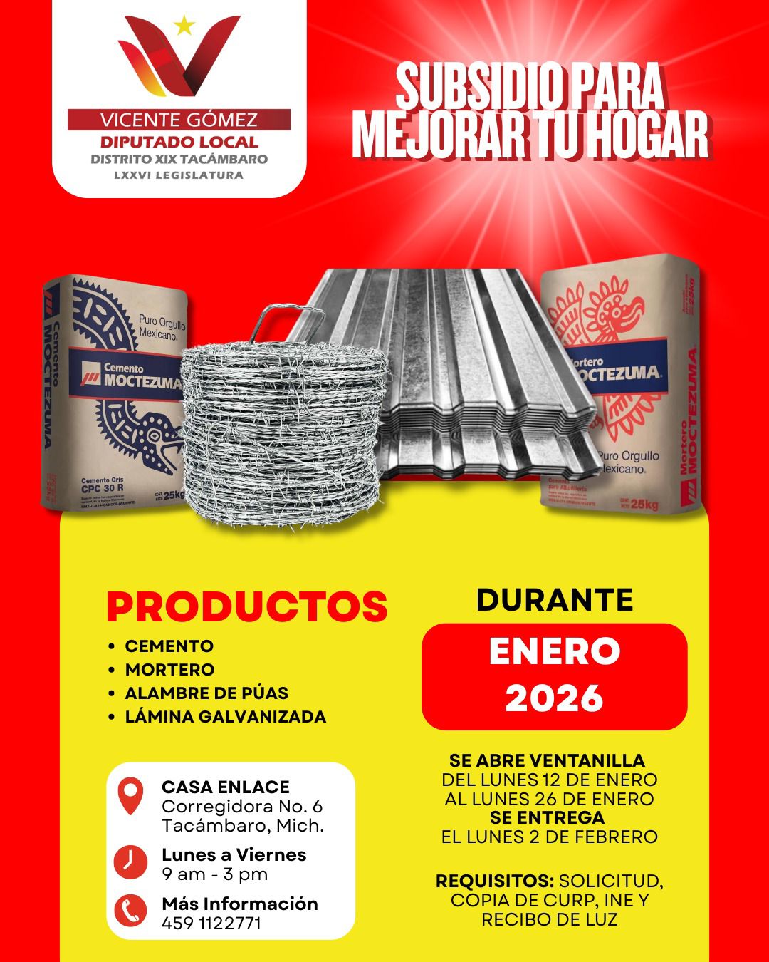 En este periodo los productos subsidiados son: varilla, cemento, mortero, alambre de púas y lámina galvanizada; mismos que de acuerdo a los registros que se realicen, se entregarán el día dos de febrero próximo.