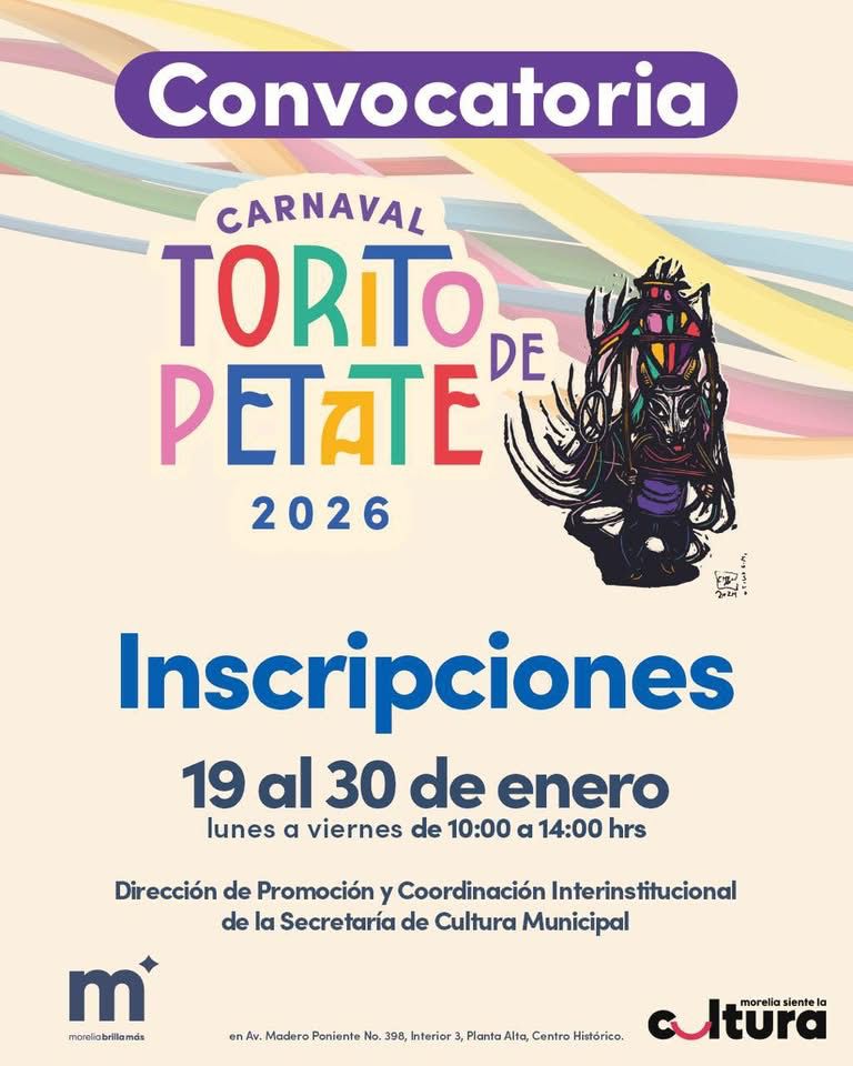 Para mayores informes, las y los interesados pueden comunicarse con la Secretaría de Cultura de Morelia.