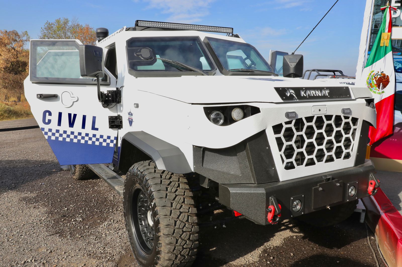Además, en cumplimiento al compromiso de fortalecer a la Guardia Civil, se hizo entrega de 800 cámaras corporales y 340 chalecos balísticos, mejorando así las condiciones de seguridad y desempeño diario de las y los elementos. El secretario explicó que como parte de las acciones para atender escenarios de alto riesgo, se incorporaron cinco vehículos blindados de ataque, destinados a operaciones tácticas especializadas.