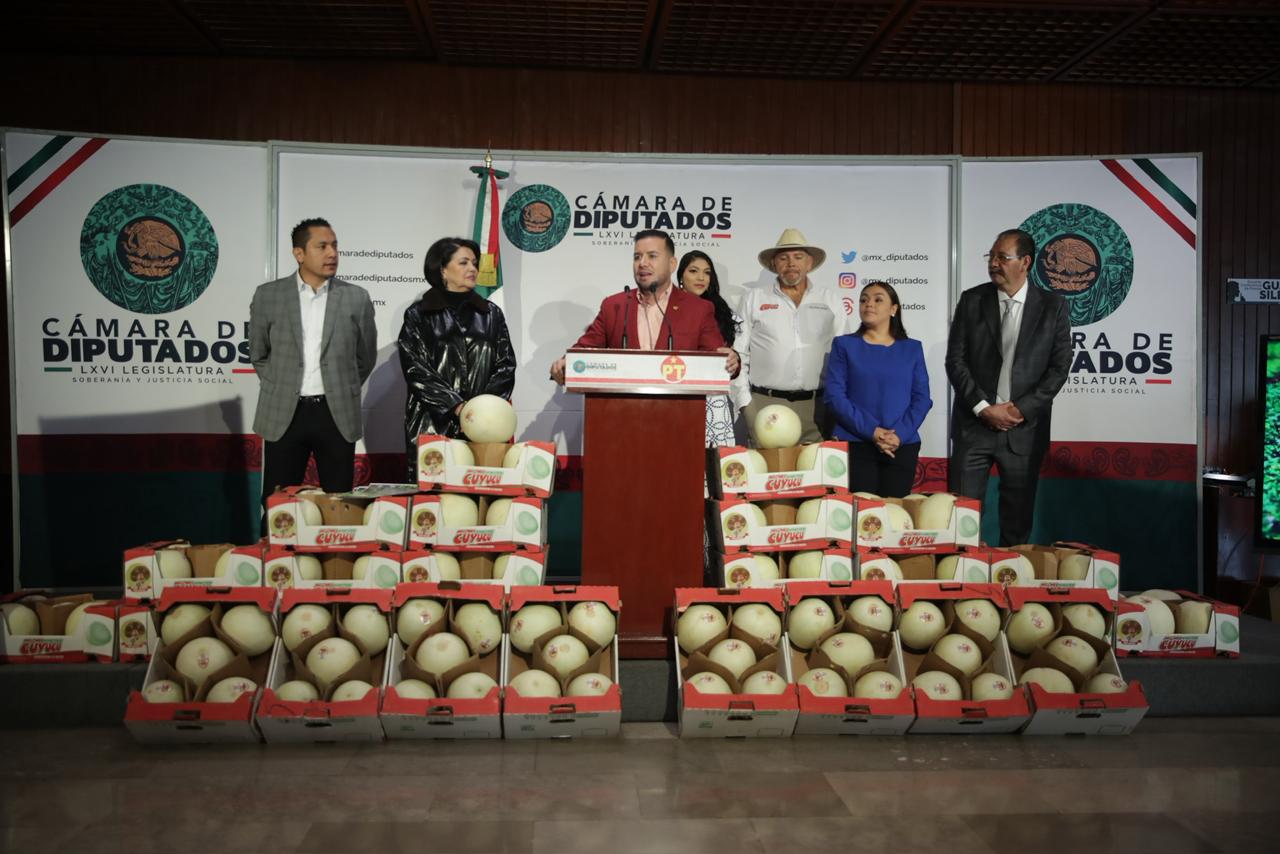 Cabe mencionar que esta es la tercera ocasión el diputado por el Distrito 22 de Múgica, Reyes Galindo Pedraza, lleva a San Lázaro el producto melón de Zicuirán con el que busca promocionar en todo el país la Expo Feria del Melón.
