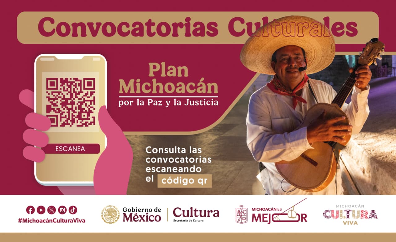 En el marco del Plan Michoacán por la Paz y la Justicia, la Secretaría de Cultura de Michoacán (Secum) convoca a creadores, gestores, colectivos y comunidades culturales del estado a participar en las convocatorias federales vigentes impulsadas por la Secretaría de Cultura federal, las cuales priorizan proyectos con impacto comunitario, territorial y social.