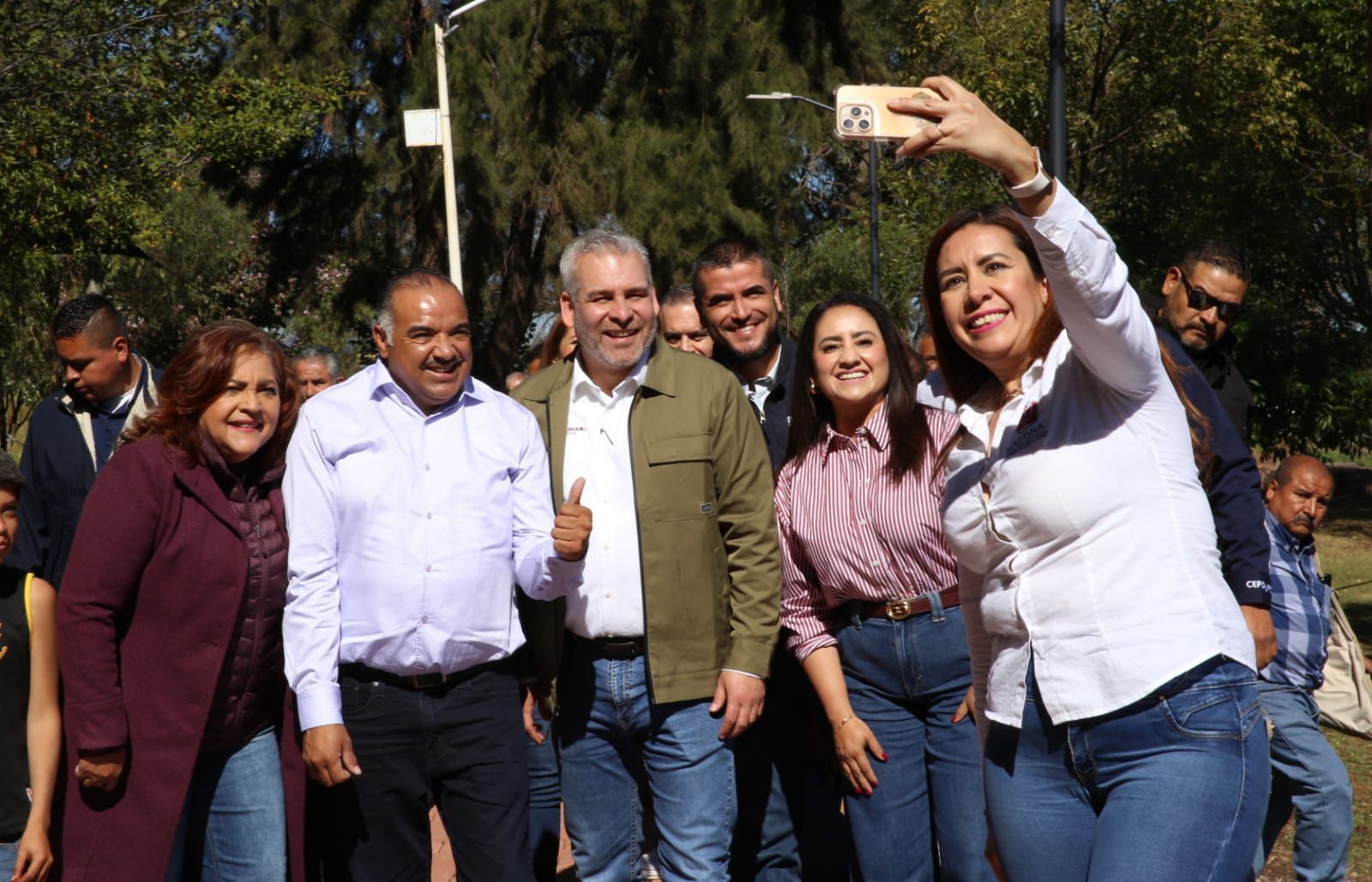 Acompañaron al gobernador el presidente municipal de Jacona, Isidoro Mosqueda Estrada; Rosa Guadalupe Ortega, diputada federal; César Erwin Sánchez Coria, secretario ejecutivo del Sistema Estatal de Seguridad Pública; Gregorio Rangel Vega, encargado local de la presa La Luz, así como habitantes de la zona.