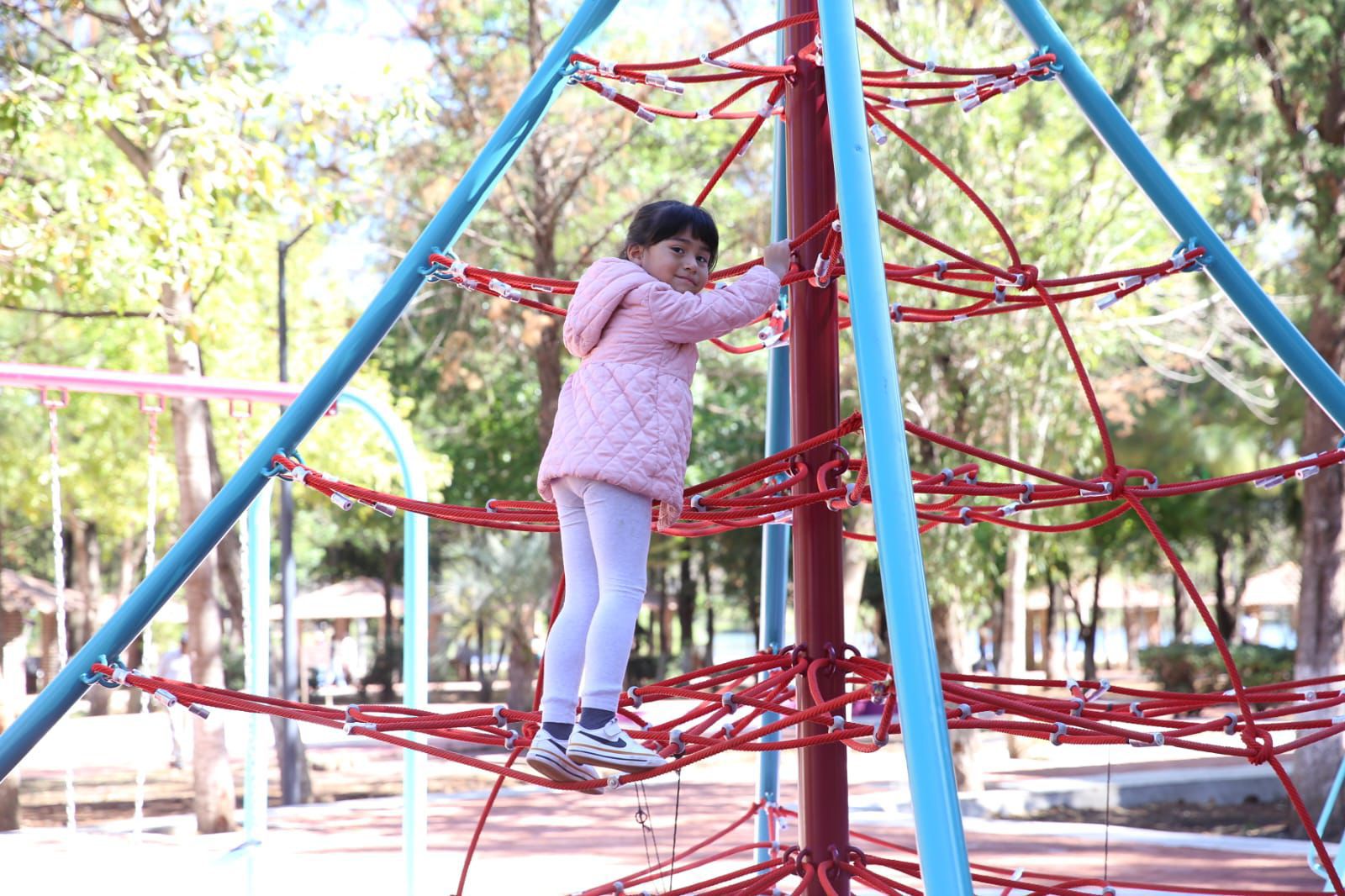 Mientras que la secretaria de Desarrollo Urbano y Movilidad, Gladyz Butanda Macías, resaltó que la población beneficiada podrá disfrutar de una majestuosa alberca natural, caminar por mil 985 metros cuadrados de andadores peatonales, convivir a lo largo de 3 mil 958 metros cuadrados, donde se construyeron mesas de picnic, jugar en el área infantil y patear el balón en las dos canchas de fútbol 7.