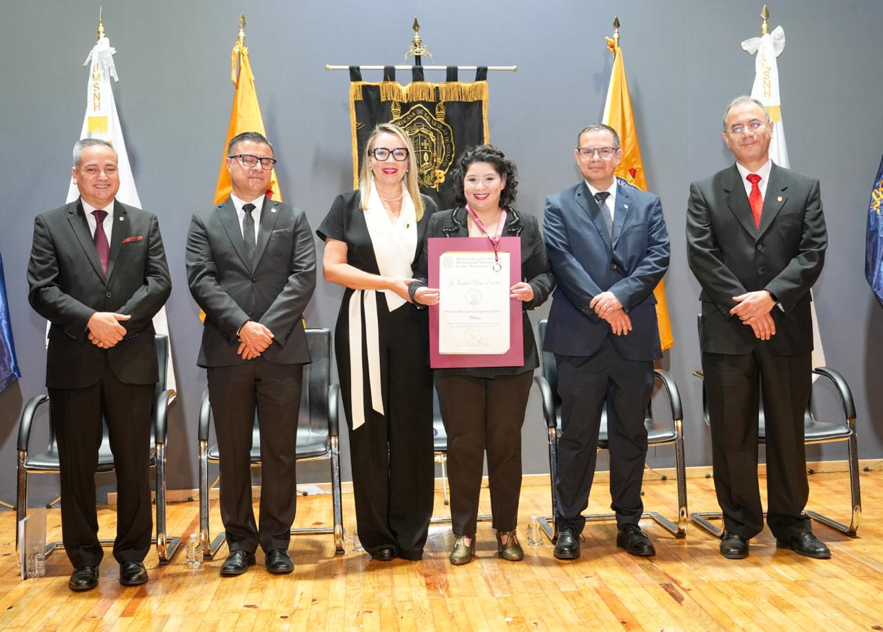 En su turno, el secretario Académico, Antonio Ramos Paz, indicó que, dicho galardón se otorga a quienes han demostrado un desempeño académico excepcional, así como aportaciones relevantes al conocimiento científico, tecnológico, humanístico y artístico. “Este reconocimiento se rige por un marco normativo preciso y riguroso, que establece criterios claros de excelencia académica, mención honorífica, productividad intelectual y conducta universitaria intachable”.
