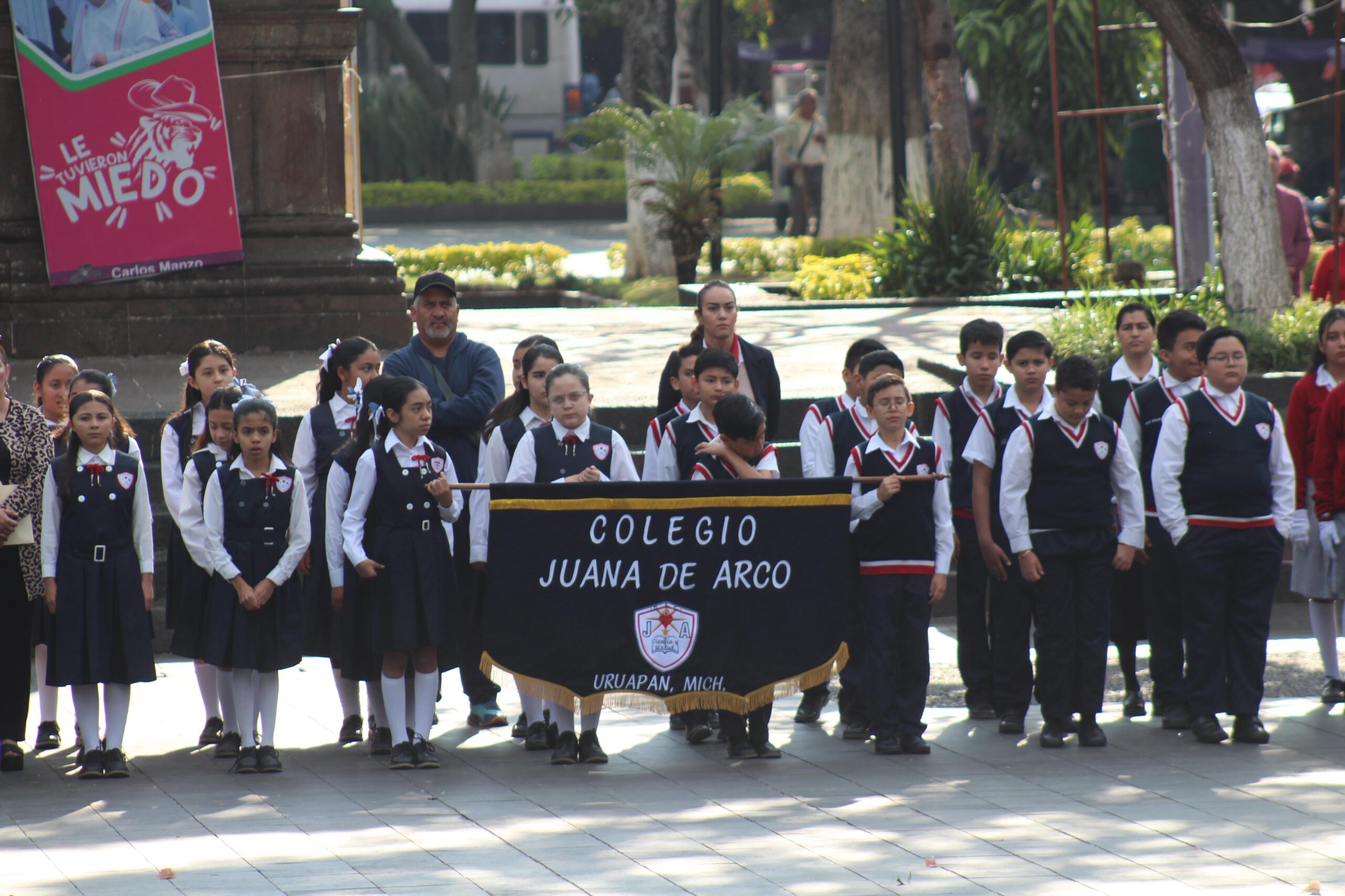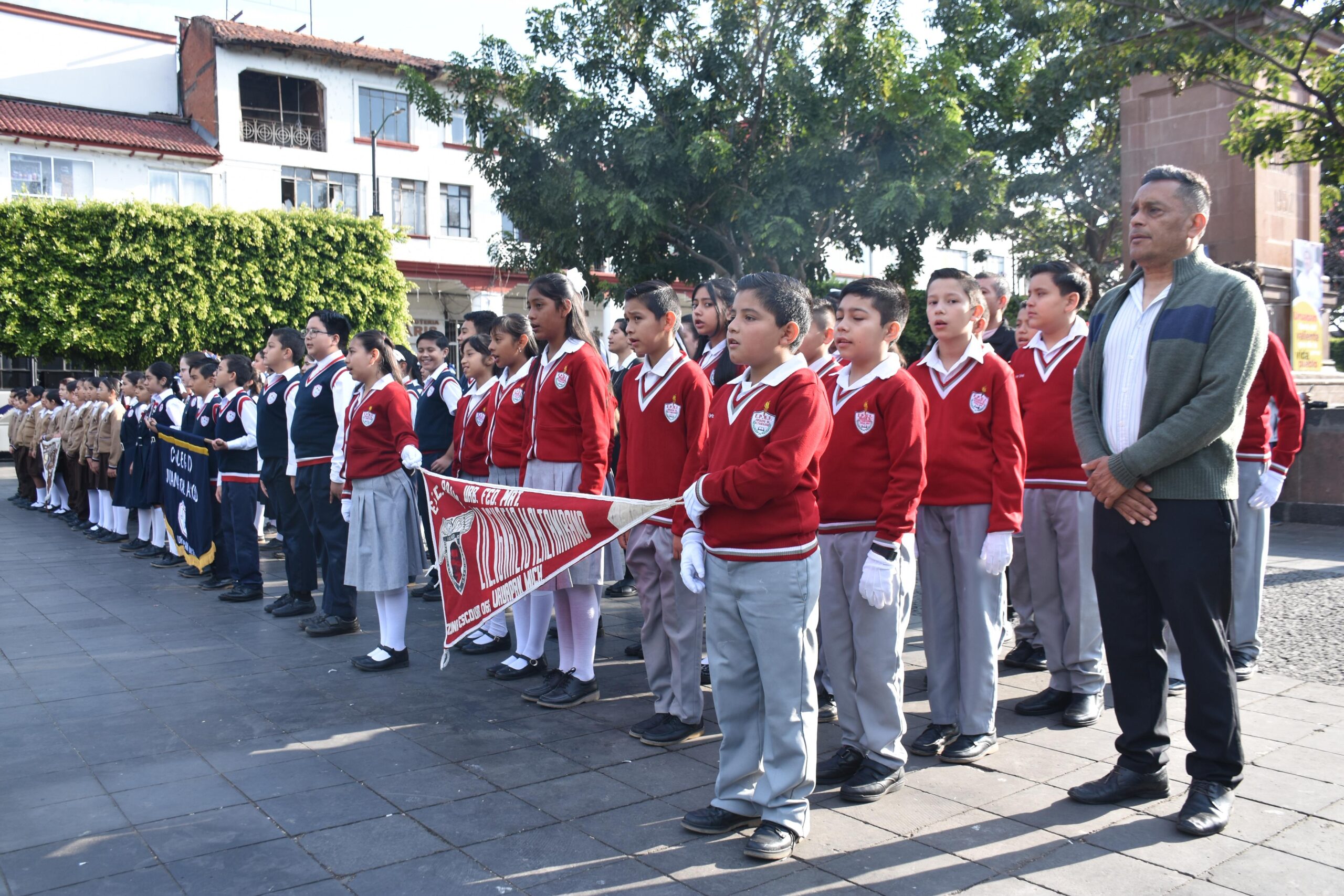 Referida ceremonia fue presidida por la C. Hilda Maldonado Medina, Síndica Municipal en representación de la Lic. Grecia Itzel Quiroz García, Presidenta Municipal de Uruapan y por el Coronel del Arma Blindada de Estado Mayor Carlos Iván Peña Guerra, Comandante del 2/o. Regimiento Mecanizado, así como de representantes de la Guardia Nacional, Policía Municipal y diversas autoridades locales, así como la participación de docentes y alumnos de distintas instituciones educativas.