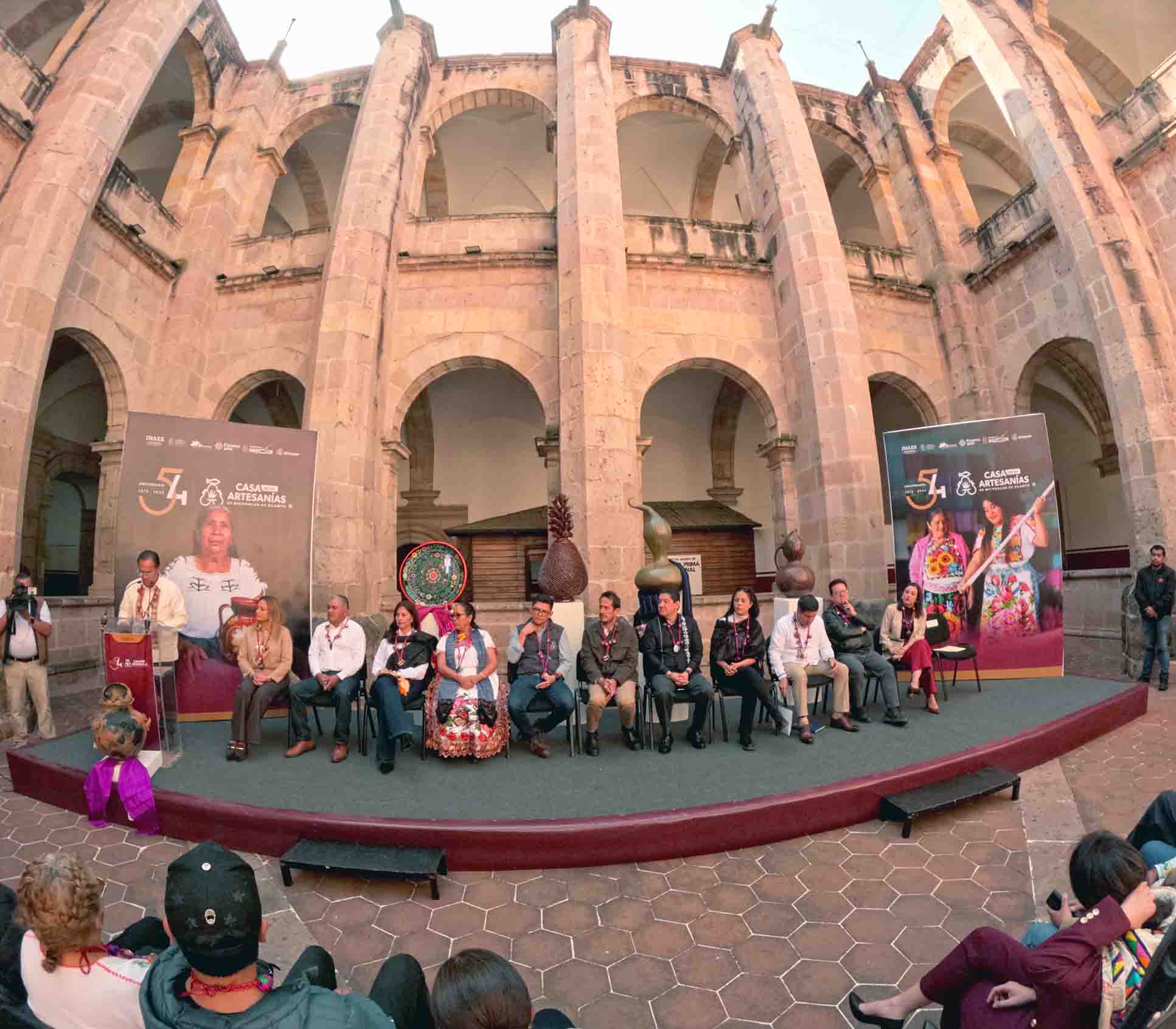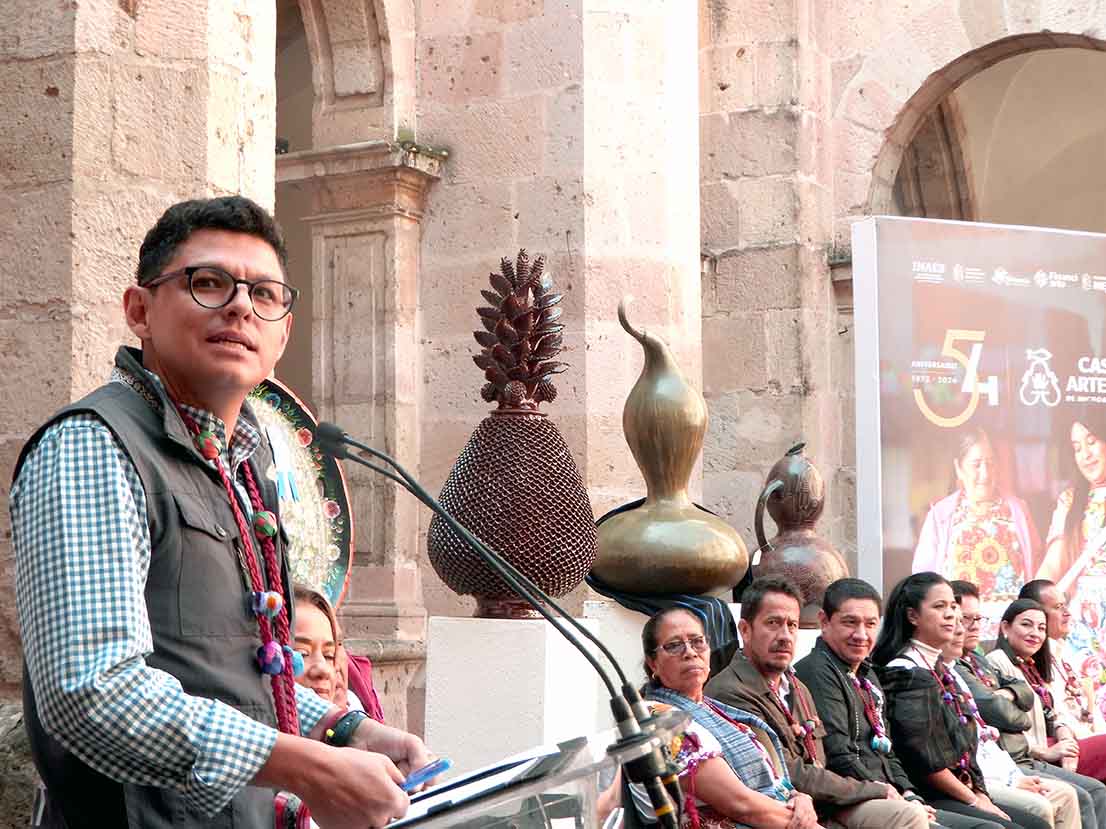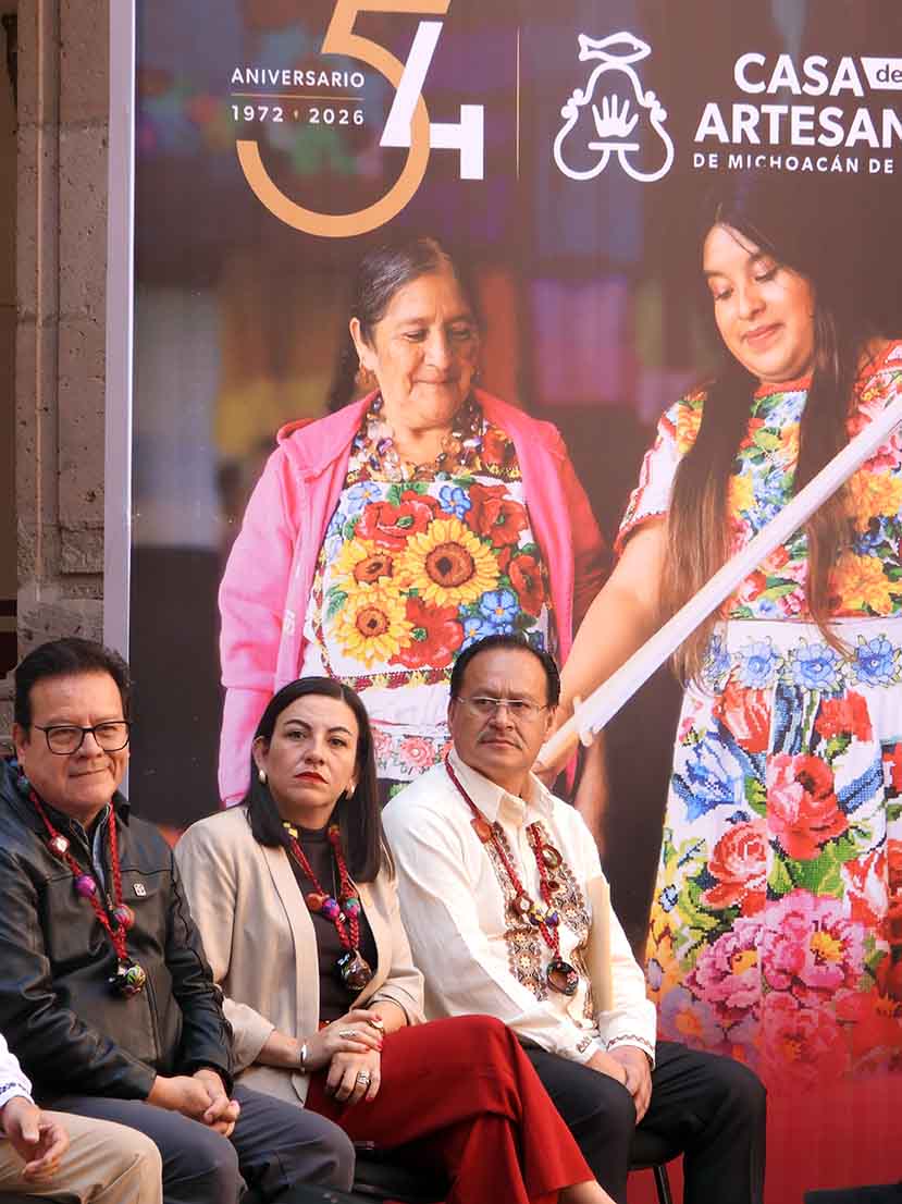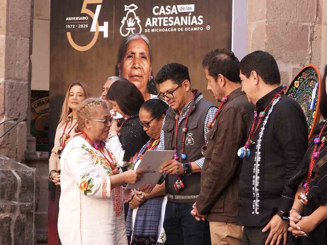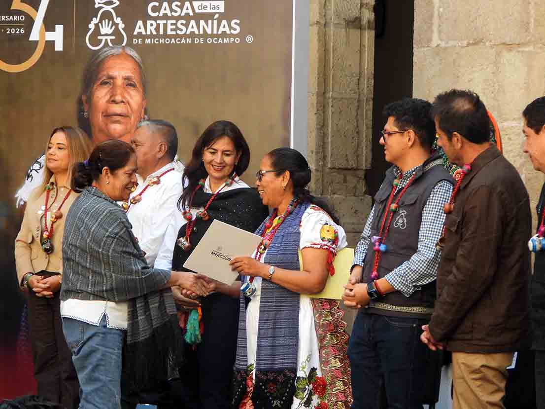Morelia, Mich., febrero del 2026.- En el marco del 54 aniversario de la Casa de las Artesanías de Michoacán (Casart) se entregaron al sector artesanal once financiamientos por un monto de 380 mil pesos, cuyo objetivo es fortalecer la actividad artesanal en la entidad mediante la atención integral de las siete regiones y las 16 ramas productivas. Asimismo, se busca un acuerdo con el IMSS para dotar de seguridad social a los artesanos.