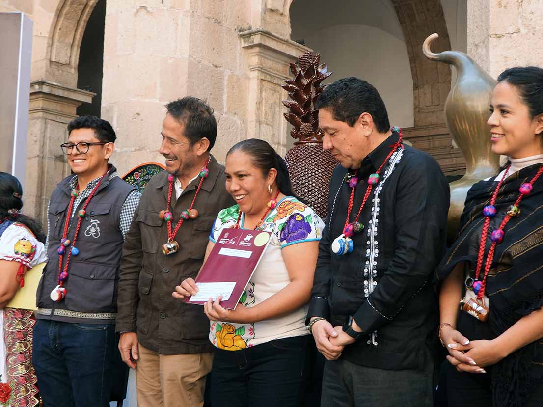 Cabe mencionar que durante la presente administración se ha consolidado la protección y certificación de la propiedad intelectual. Gracias a este impulso, productos emblemáticos como los molcajetes, esferas, catrinas y el cobre, ya cuentan con Indicación Geográfica. Además, se han establecido 13 marcas colectivas y nueve marcas de certificación artesanal, logrando que 200 artesanos estén formalmente certificados en el uso de estos distintivos.