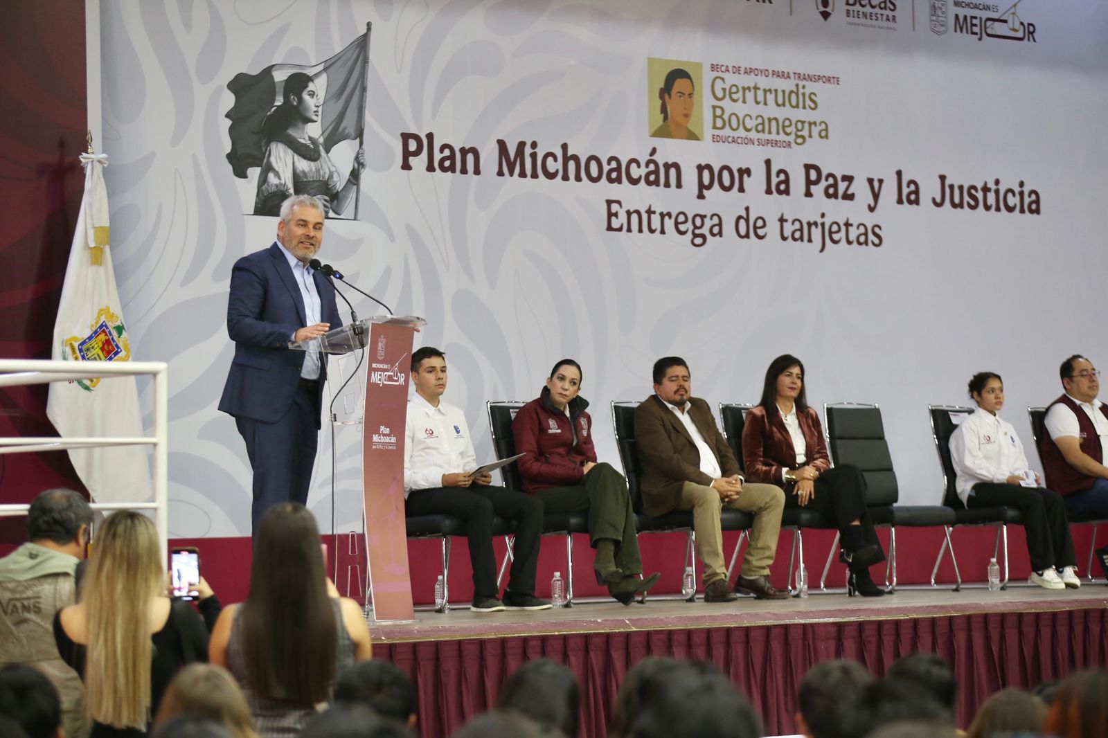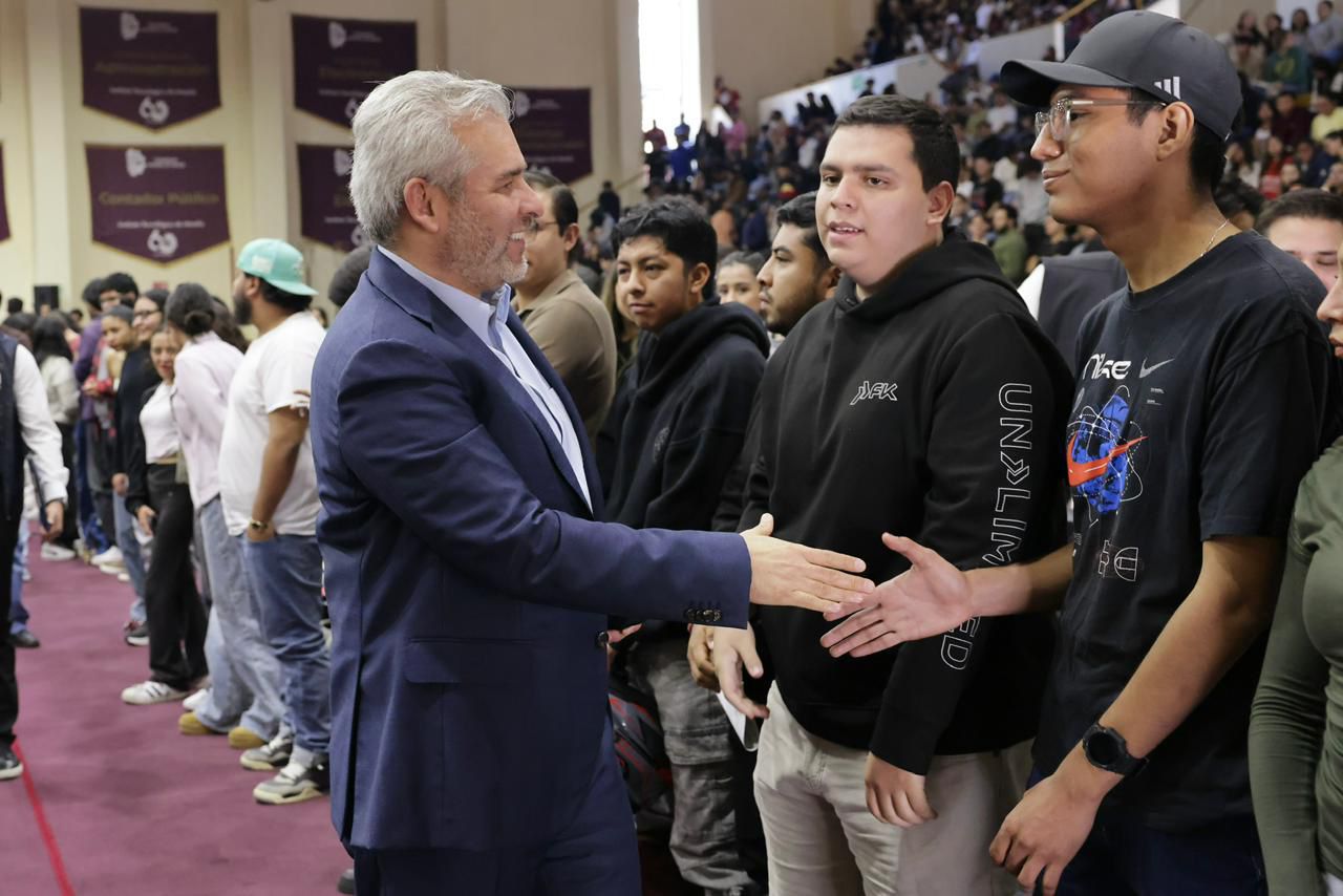 En el Instituto Tecnológico de Morelia, el gobernador Alfredo Ramírez Bedolla inició la entrega de tarjetas de la Beca Gertrudis Bocanegra que beneficiará a más de 44 mil alumnas y alumnos de universidades y tecnológicos públicos para apoyar sus gastos de transporte con mil 900 pesos bimestrales.