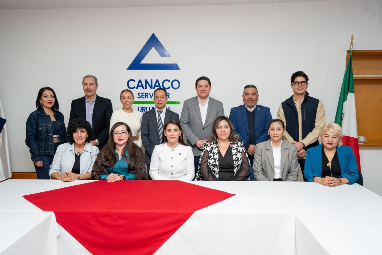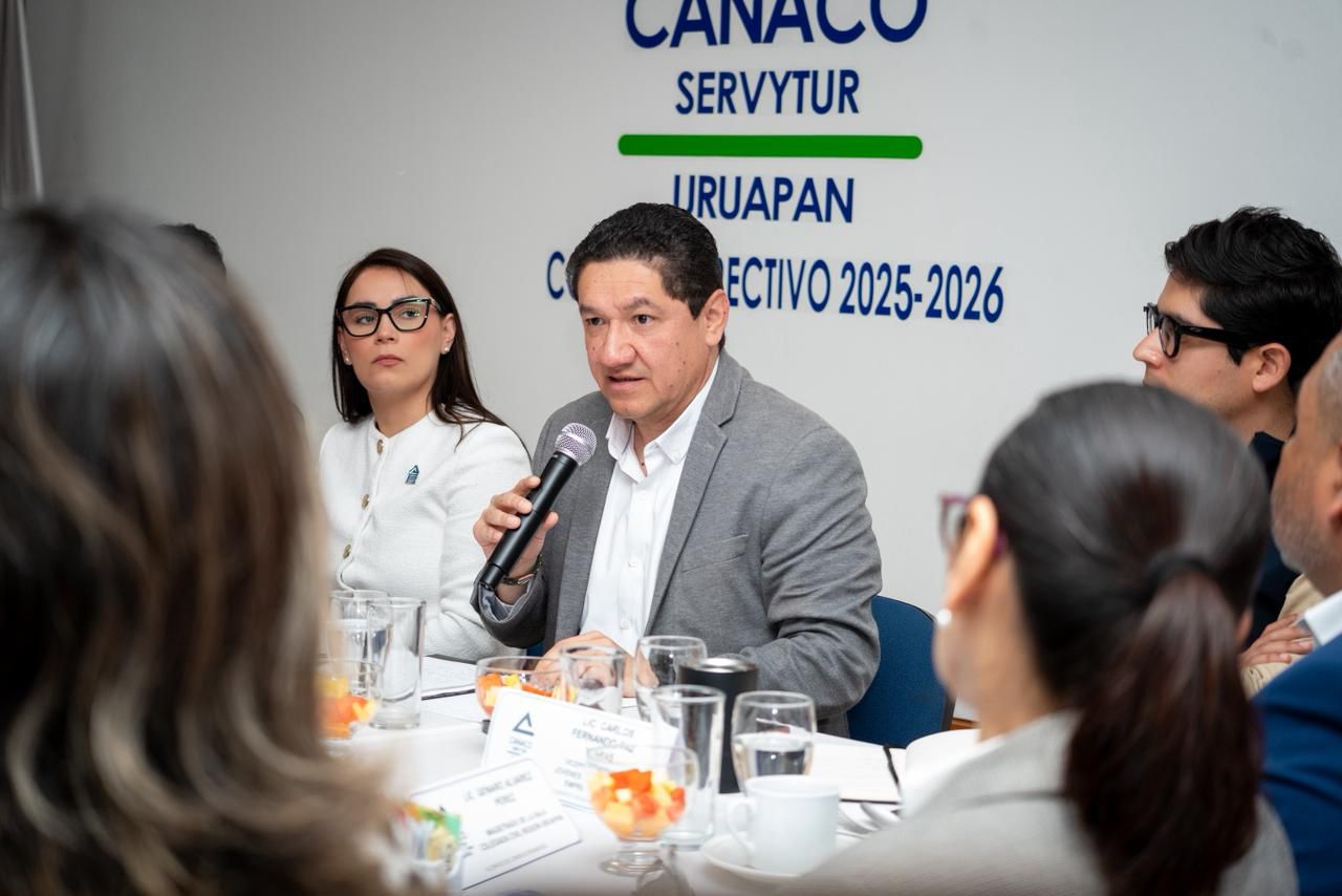 Uruapan, Michoacán . El magistrado presidente del Poder Judicial de Michoacán, Hugo Gama Coria, sostuvo un encuentro con empresarias y empresarios de la Cámara Nacional de Comercio, Servicios y Turismo (CANACO) Uruapan, como parte de las acciones permanentes de vinculación con el sector productivo del estado.
