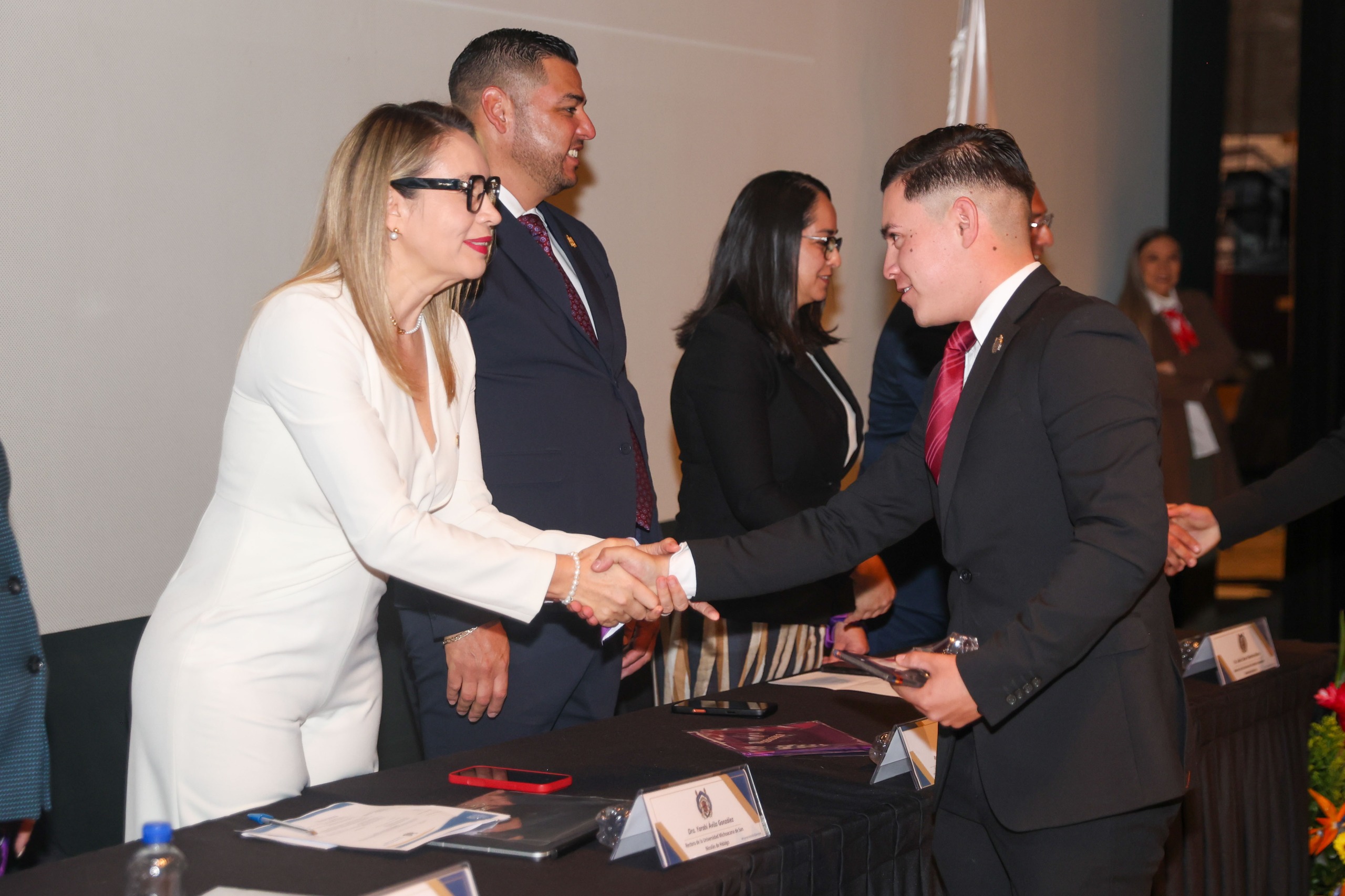 La rectora invitó a los recién graduados a titularse lo antes posible, al tiempo que, refrendó el agradecimiento a la SSP, así como a la FGE por abrir las puertas para que egresadas y egresados nicolaitas puedan incorporarse al campo laboral en dichas instituciones.