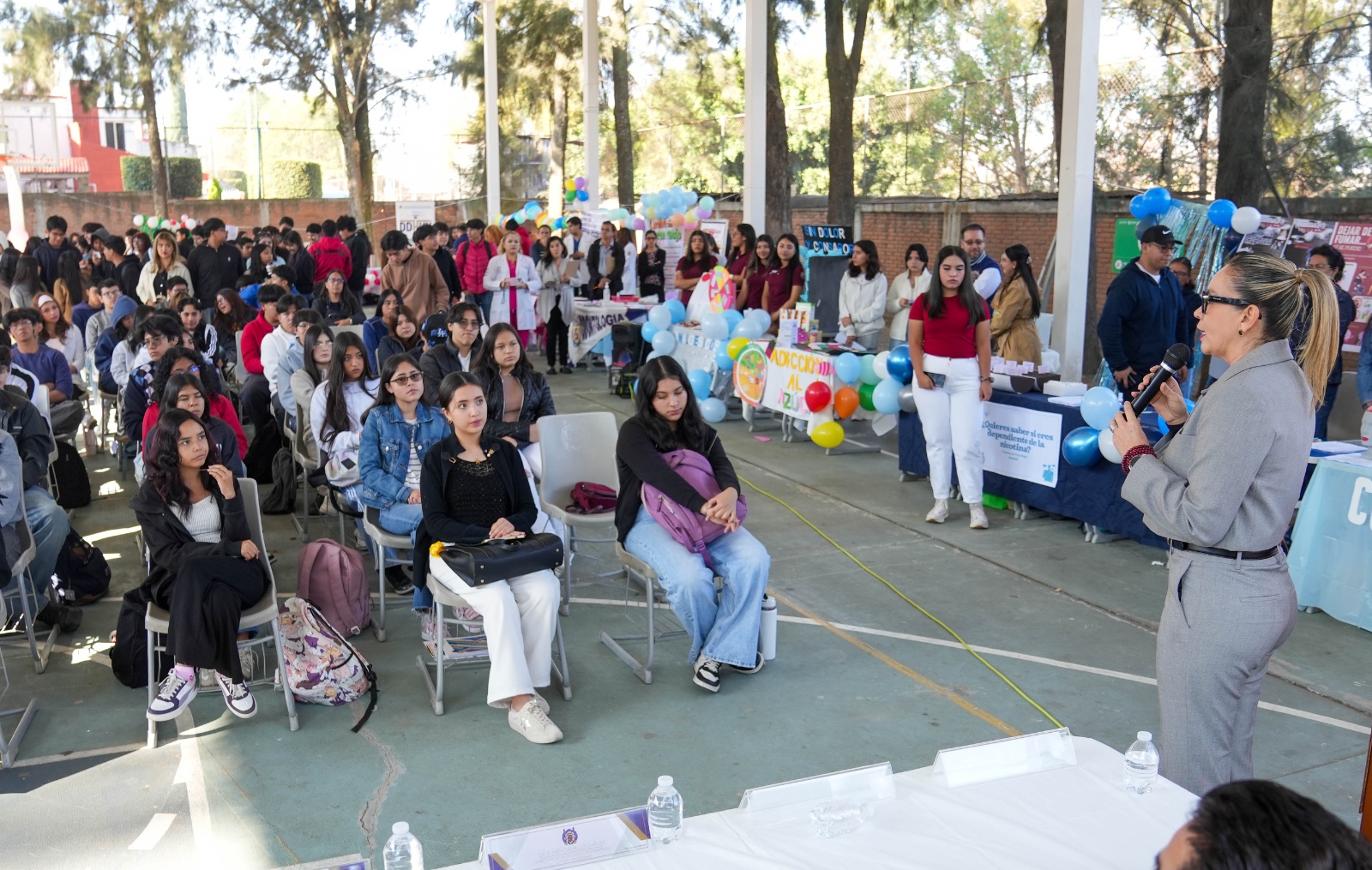 En tanto, el director de la Facultad de Ciencias Médicas y Biológicas, Víctor Hugo Mercado Gómez, precisó que en la actual administración a cargo de la rectora Yarabí Ávila, se han impulsado iniciativas que incluyen la prevención de adicciones como parte de una estrategia más amplia de Cultura de Paz. Agregó que a través de la acción que hoy se realiza se busca promover estilos de vida saludable y recursos de apoyo con personas que tienen conocimiento en cada una de las áreas para hacer frente a las adicciones, “queremos integrar a la comunidad educativa, padres de familia y alumnos en la construcción de un entorno seguro”.