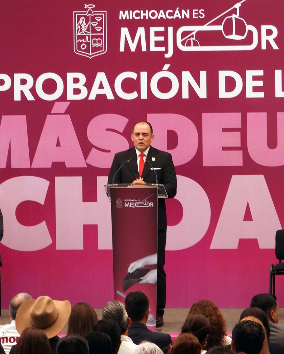 En el marco del evento de “Aprobación de la Ley, no más deuda para Michoacán”, el gobernador Alfredo Ramírez Bedolla afirmó que la deuda de largo plazo es un anclaje al pasado y a la falta de desarrollo; mientras que Baltazar Gaona García, presidente de la Mesa Directiva del Congreso, consideró que a partir de hoy se marca un antes y un después en la administración de los recurs