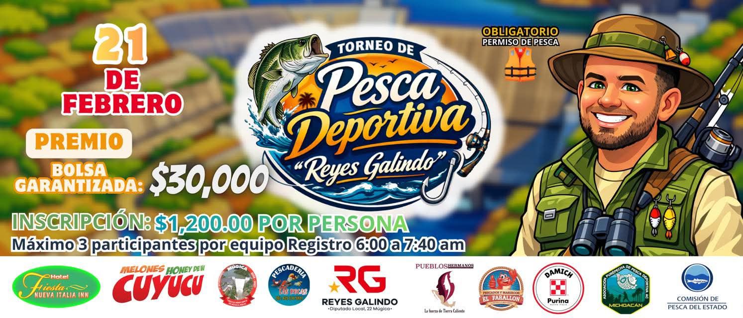 Múgica, Mich.- Este sábado 21 de febrero se llevará a cabo el Primer Torneo de Pesca Deportiva “Reyes Galindo”, en la presa Francisco J. Múgica y para ello, el diputado por el Distrito local 22, hizo una invitación a todos los aficionados a esta actividad para que se participen.