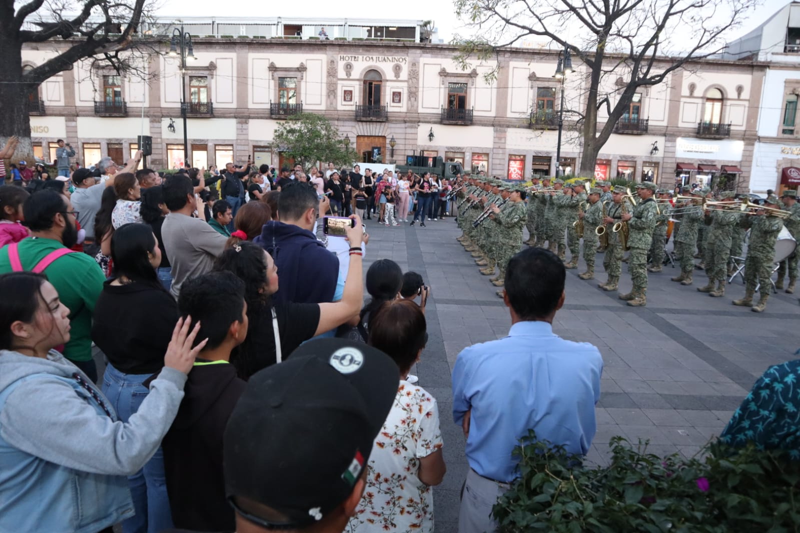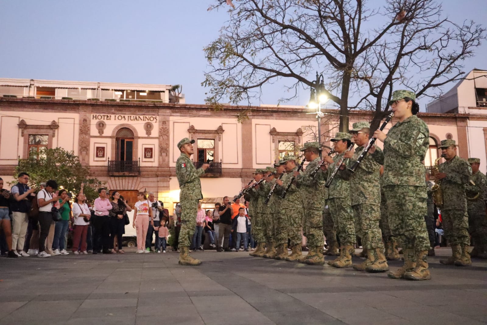 Durante ambas presentaciones, la Banda de Música de la XII Región Militar sorprendió al público asistente, transformando estos espacios públicos en puntos de encuentro y convivencia, generando un ambiente de alegría, cercanía y orgullo nacional celebrando los 113 años de creación del Ejército Mexicano.