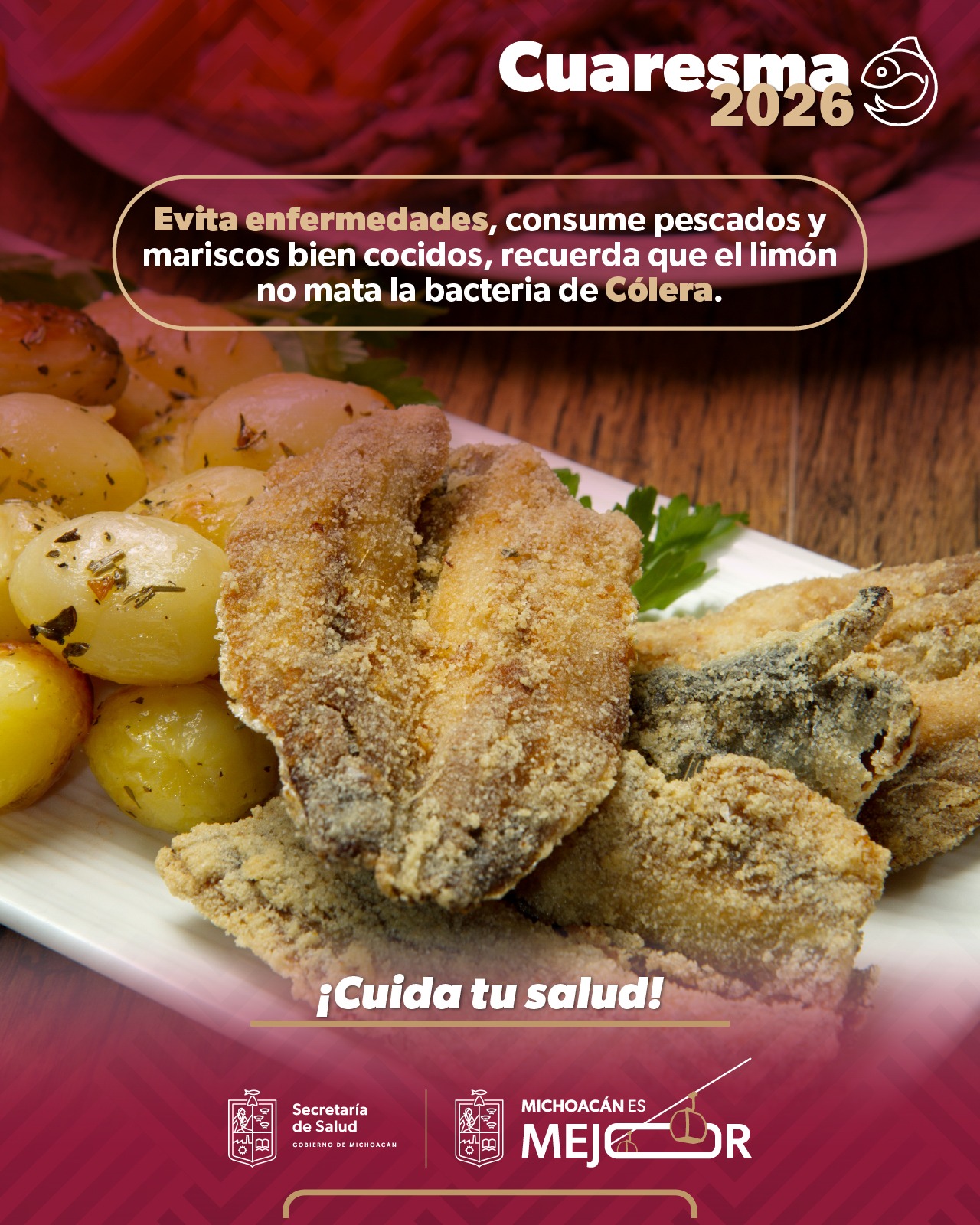 Ante el inicio de la temporada de Cuaresma y el incremento en el consumo de productos del mar, la Secretaría de Salud de Michoacán (SSM), a través de la Comisión Estatal para la Protección contra Riesgos Sanitarios (Coepris), intensifica las acciones de vigilancia y hace un llamado a la ciudadanía a extremar precauciones para prevenir intoxicaciones y enfermedades gastrointestinales.
